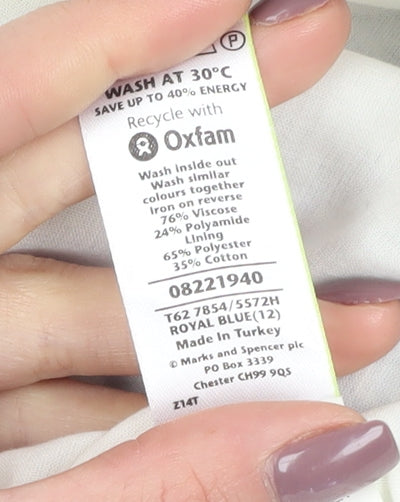 Marks and Spencer Women's Blue Linen A-Line Knee Length Skirt Size 12