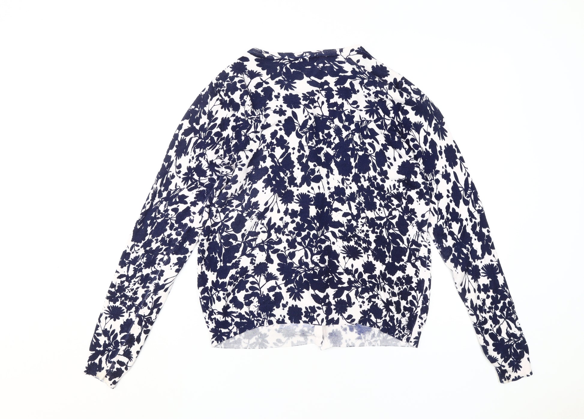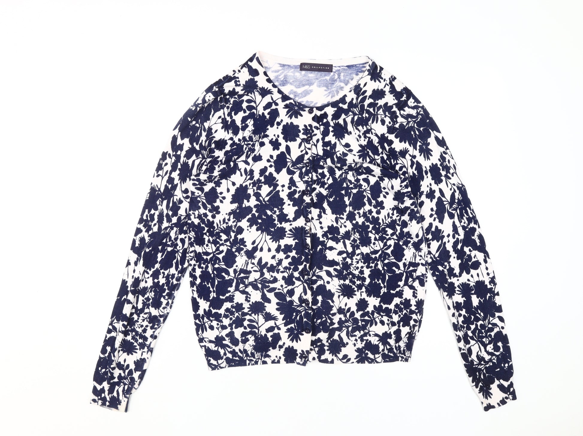Dive into elegance with this exquisite Marks and Spencer Women's Blue Floral Cardigan, designed to add a touch of sophistication to any wardrobe. Crafted for comfort and style, this cardigan is perfect for those seeking both functionality and fashion. The cardigan features a charming floral pattern with a delightful blue hue, making it an ideal choice for the spring and summer seasons. Designed with a comfortable round neckline and long sleeves, it provides a relaxed fit that ensures effortless wearing all day long. Made predominantly from high-quality viscose and blended with polyamide, this cardigan offers a soft and smooth texture to the skin. Its lightweight feature makes it perfect for layering or wearing on its own during warmer days, offering versatility and ease of styling. The cardigan's classic button accent adds a touch of traditional elegance, while its machine washable nature ensures easy care and maintenance. Whether you're dressing it up for a casual outing or keeping it simple for a day at work, this cardigan matches various occasions with its timeless appeal. Ideal for women who appreciate a blend of comfort and timeless style, this classic floral cardigan is more than just a piece of clothing; it's a statement of grace and charm. Don't miss the opportunity to make this beautiful piece a staple in your closet.