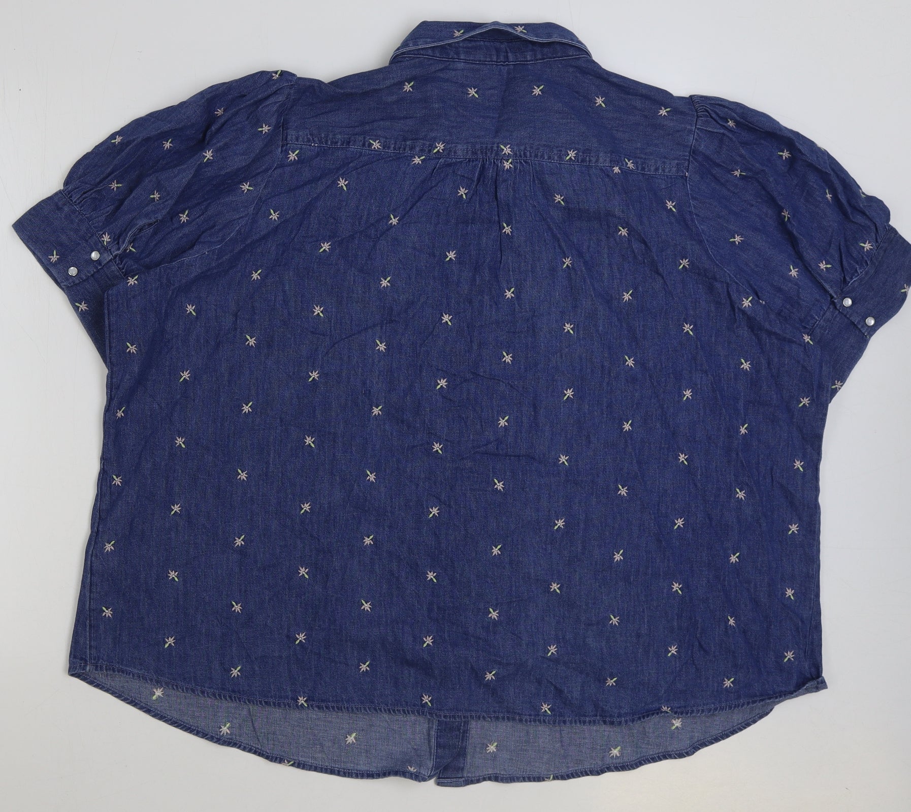 Womens Blue Floral Cotton Basic Button-Up Size 22 Collared