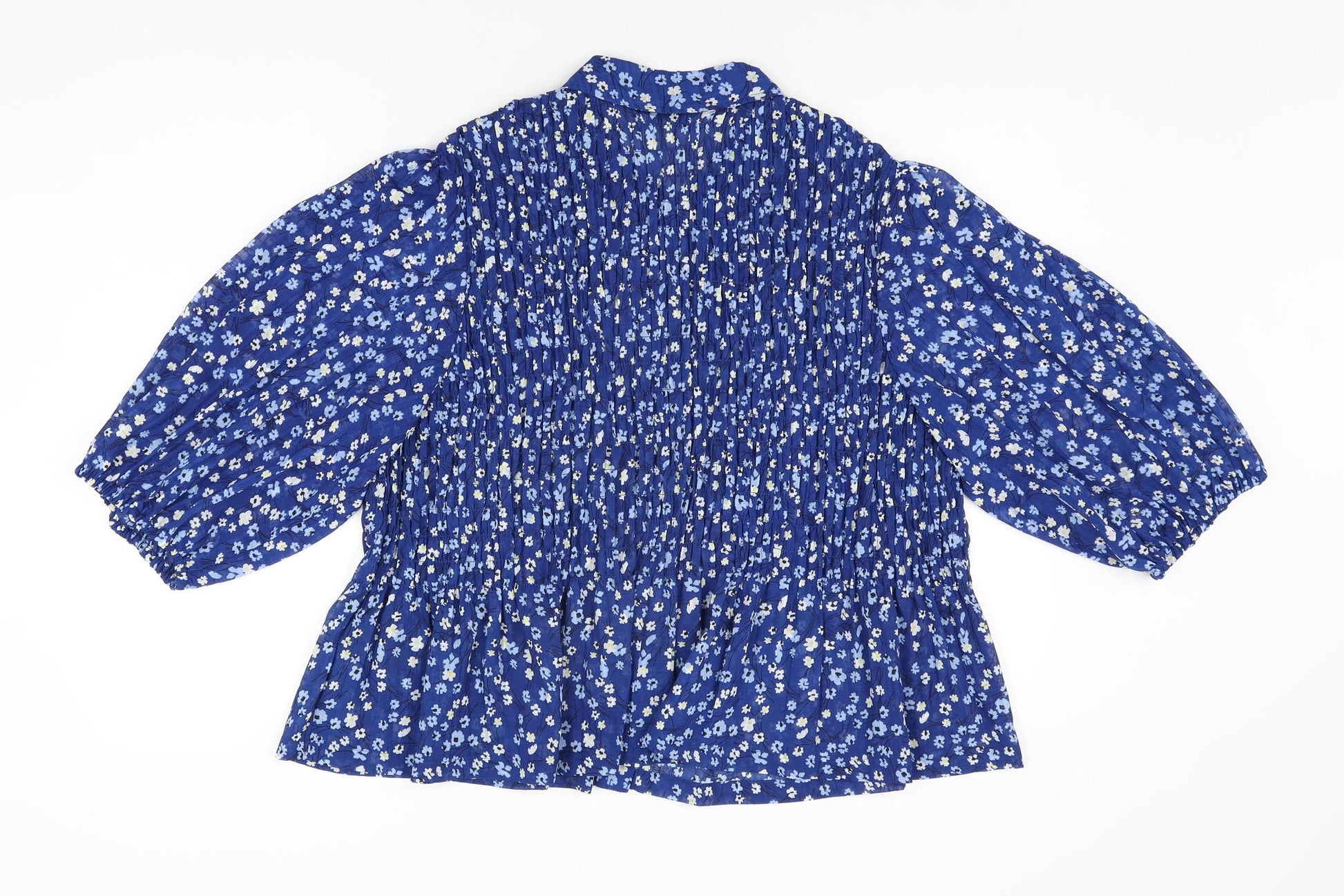 Womens Blue Floral Polyester Basic Button-Up Size 18 Collared