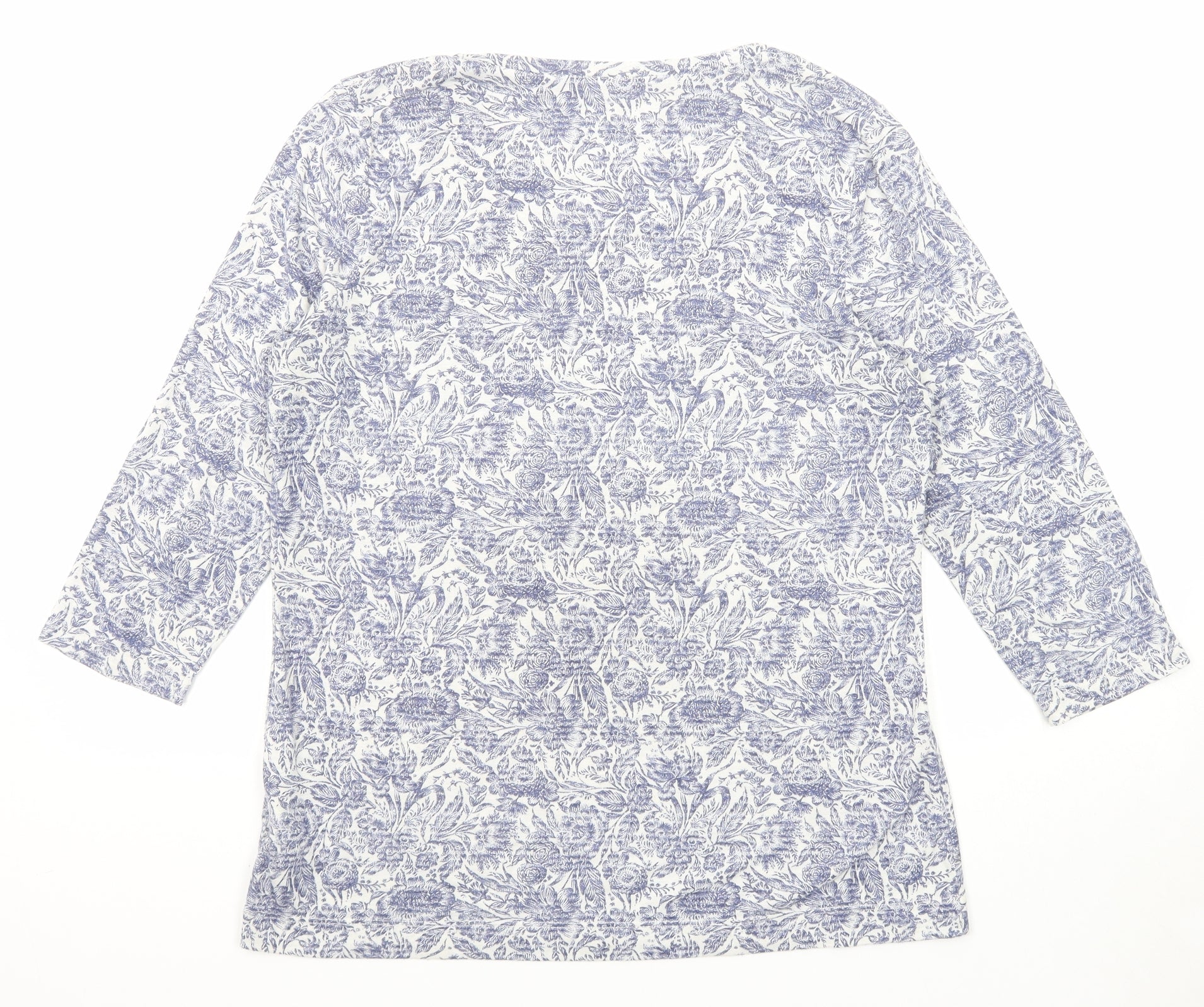 Womens Blue Floral Polyester Basic T-Shirt Size 16 Boat Neck