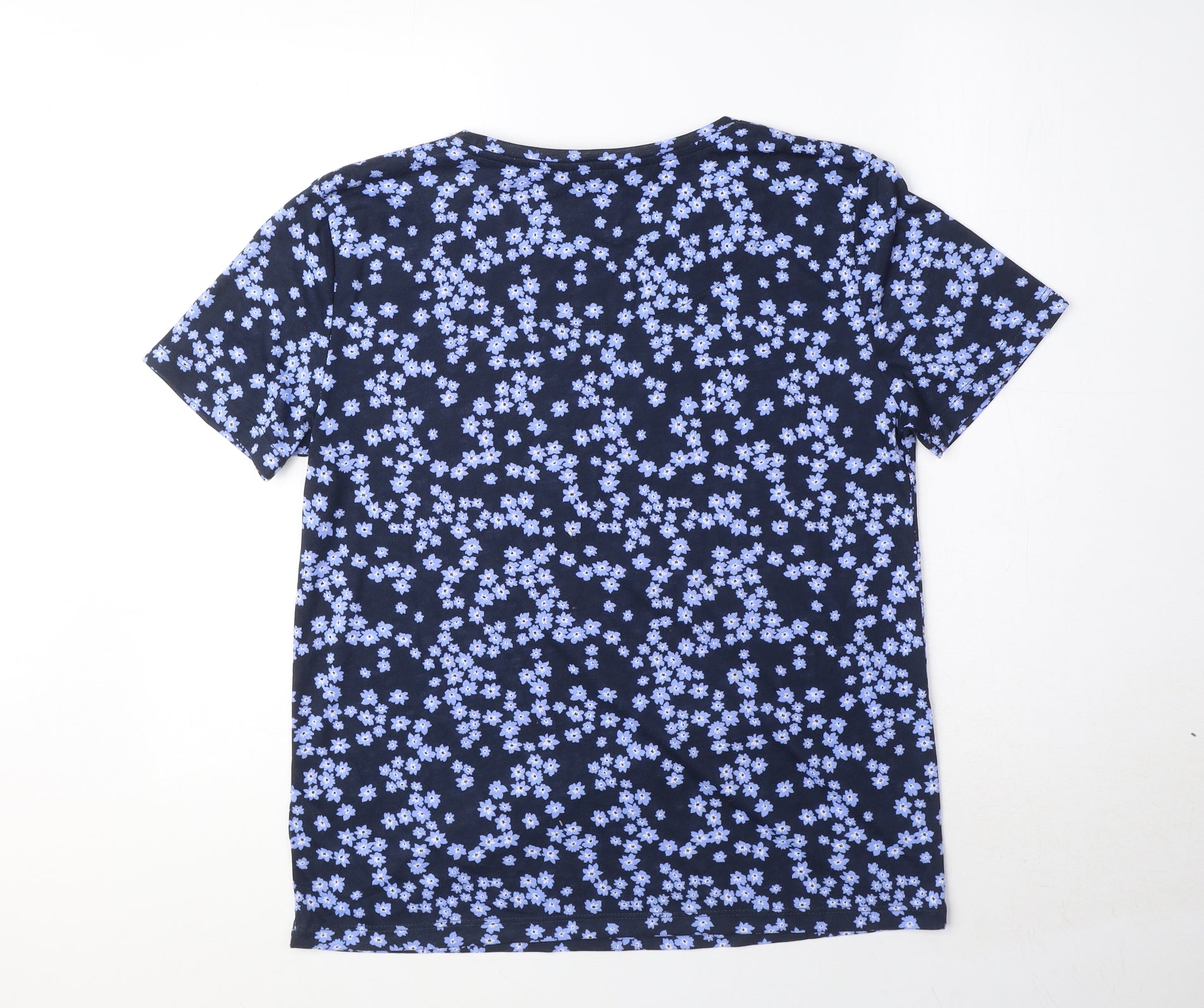 Womens Blue Floral Polyester Basic T-Shirt Size 8 Round Neck