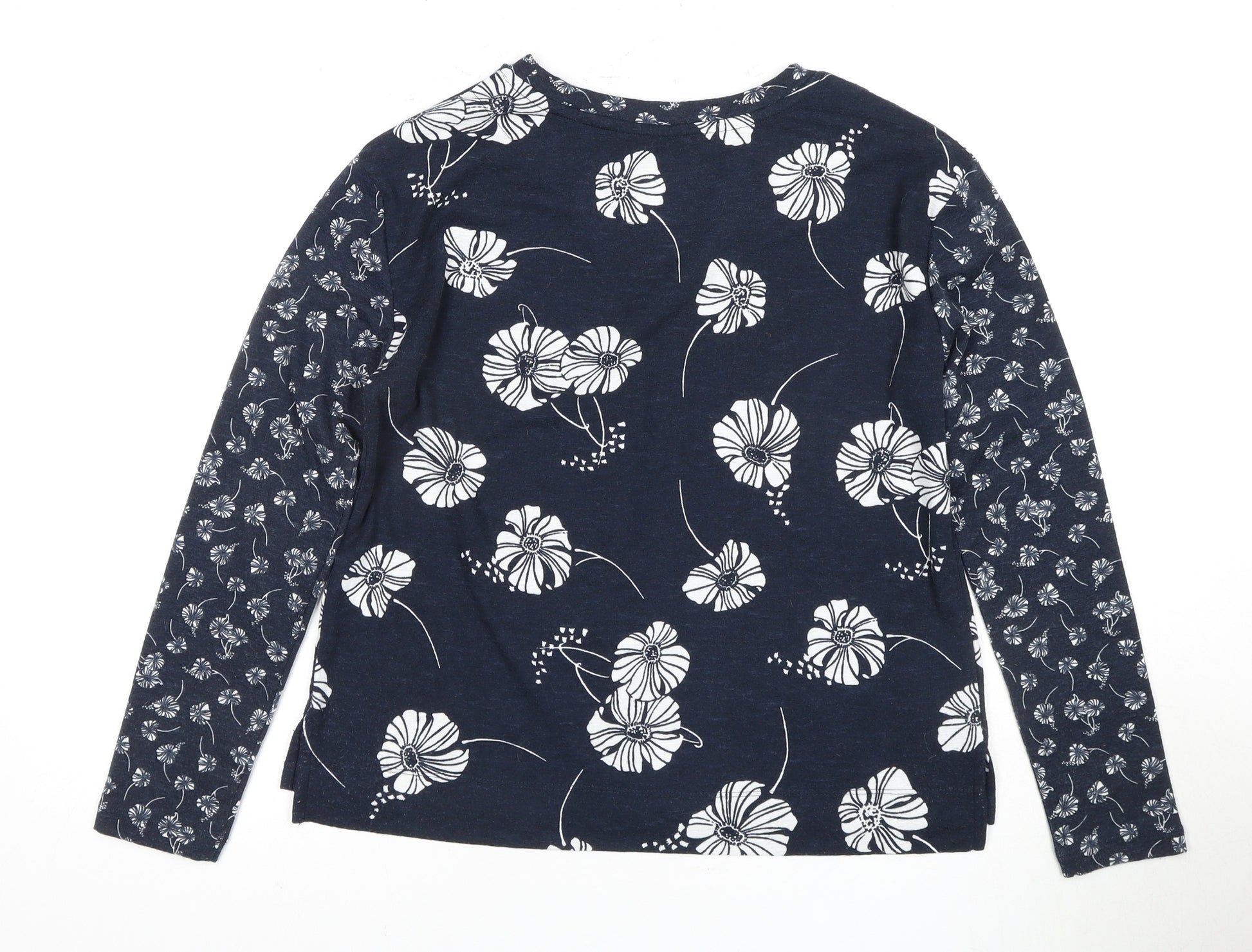 Add a touch of floral elegance to your wardrobe with this women's T-shirt from Marks and Spencer. Designed for casual wear, this shirt is perfect for creating a laid-back yet stylish look. Featuring a charming floral pattern in a rich blue hue, it adds a burst of colour to your outfit. Crafted from a blend of polyester and elastane, it offers a comfortable fit that moves with you. The long sleeves and crew neck design provide a classic and timeless silhouette, making it a versatile addition to any casual ensemble. This T-shirt is ideal for women seeking everyday style with a twist. The regular fit ensures comfort and ease of movement, while the quality construction by Marks and Spencer guarantees durability. Pair it with your favourite jeans or a cute skirt for an effortless look. Machine washable, this top offers convenience alongside style. Available in size 8, it is perfect for those who appreciate both comfort and fashion. Excellent in condition and well cared-for, this top is ready to enhance your wardrobe at an affordable price.