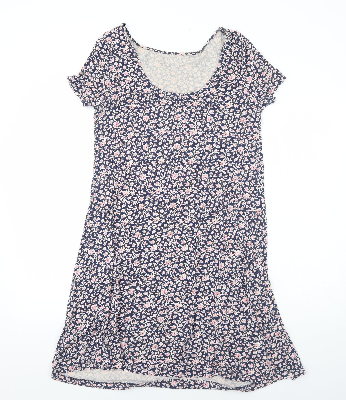 Womens Blue Floral Viscose A-Line Size 10 Round Neck Pullover