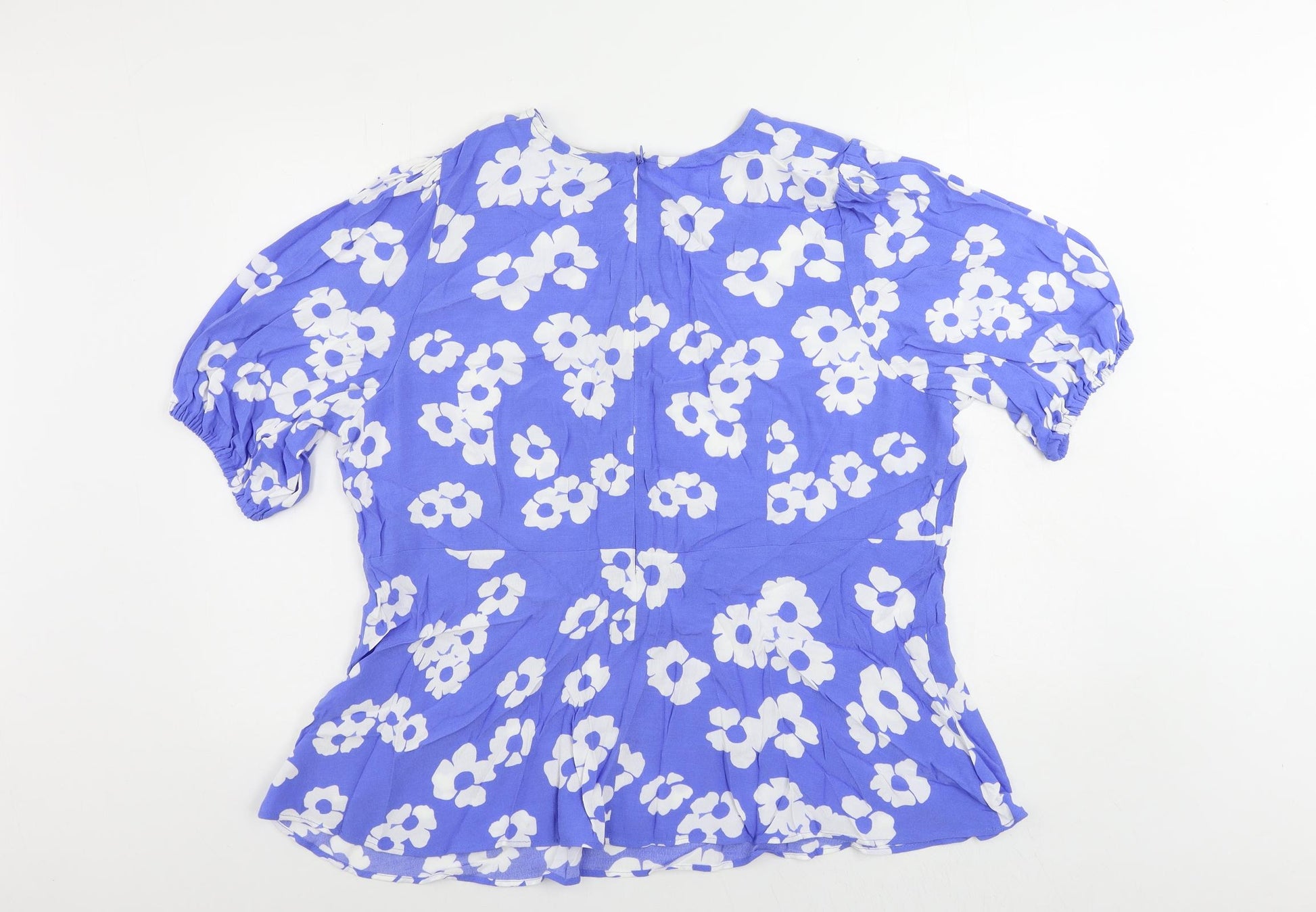 Womens Blue Floral Viscose Basic Blouse Size 22 Round Neck