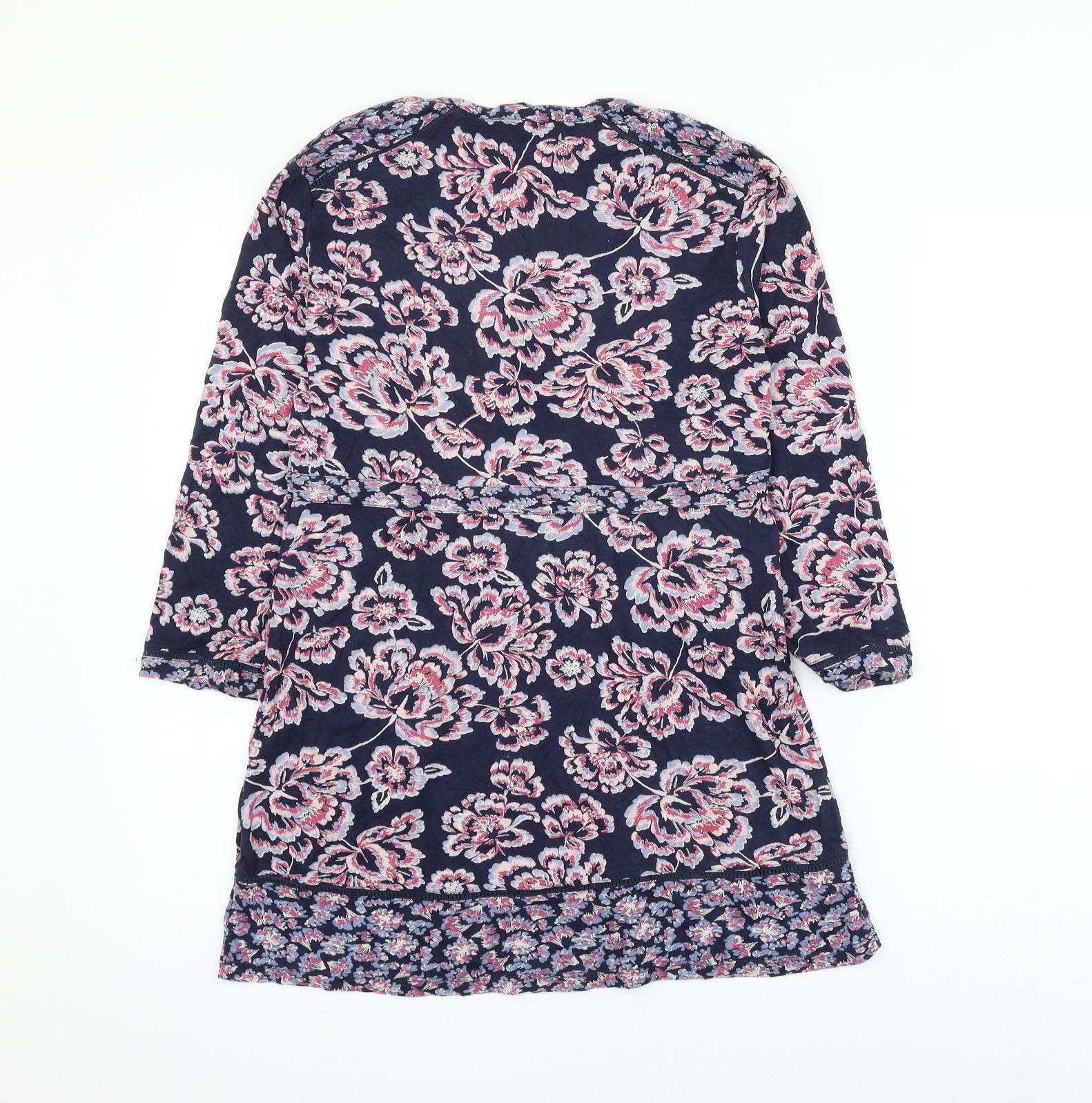 Womens Blue Floral Viscose Basic Blouse Size 8 V-Neck