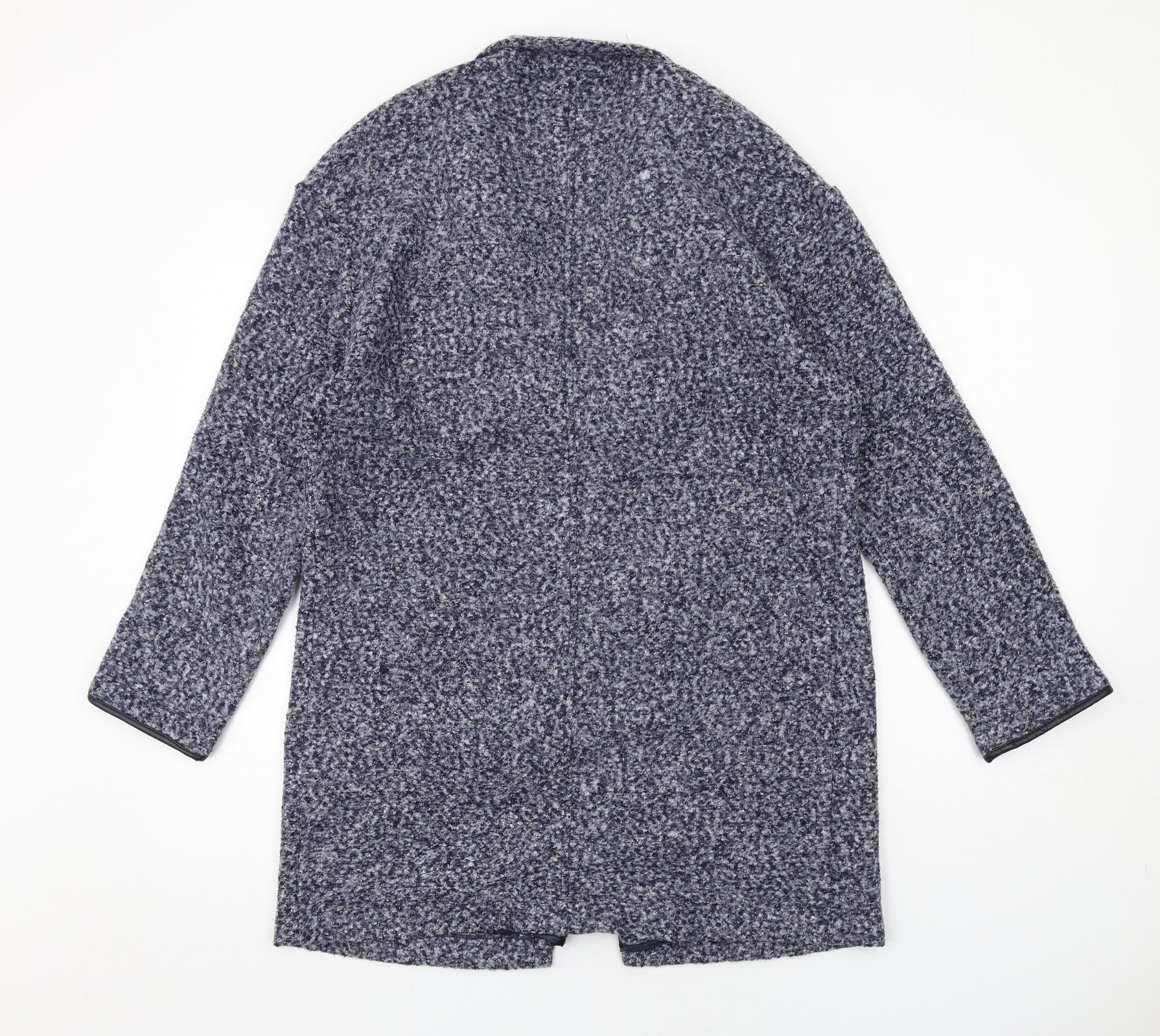 Womens Blue Geometric Overcoat Coat Size 12