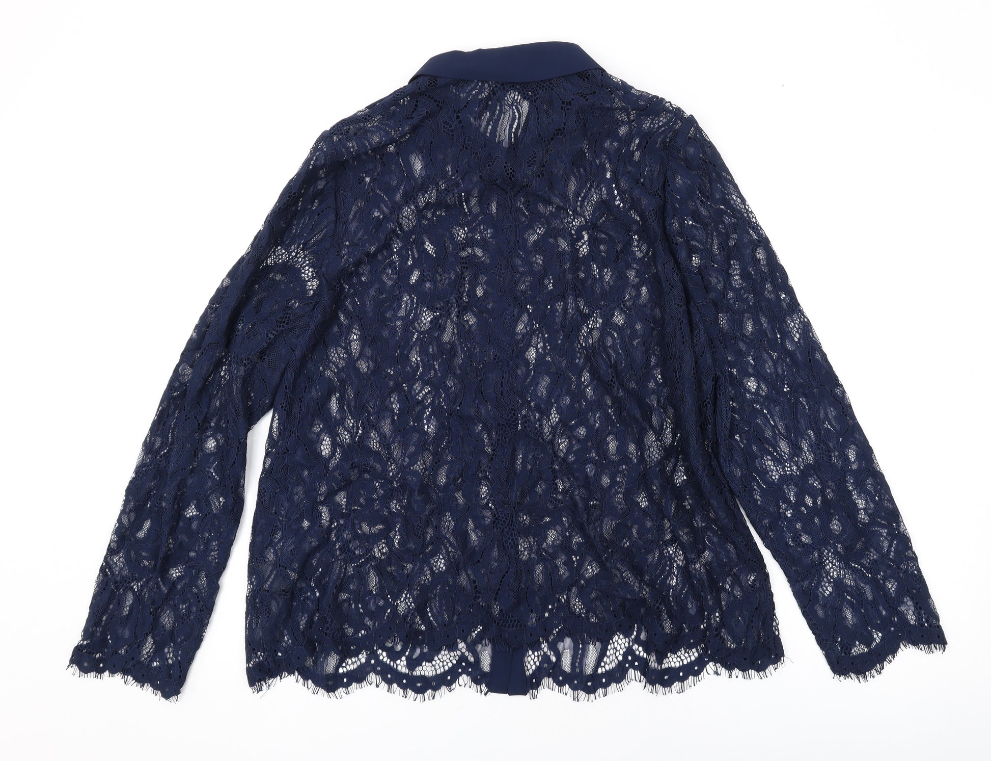 Womens Blue Geometric Polyamide Basic Button-Up Size 16 Collared