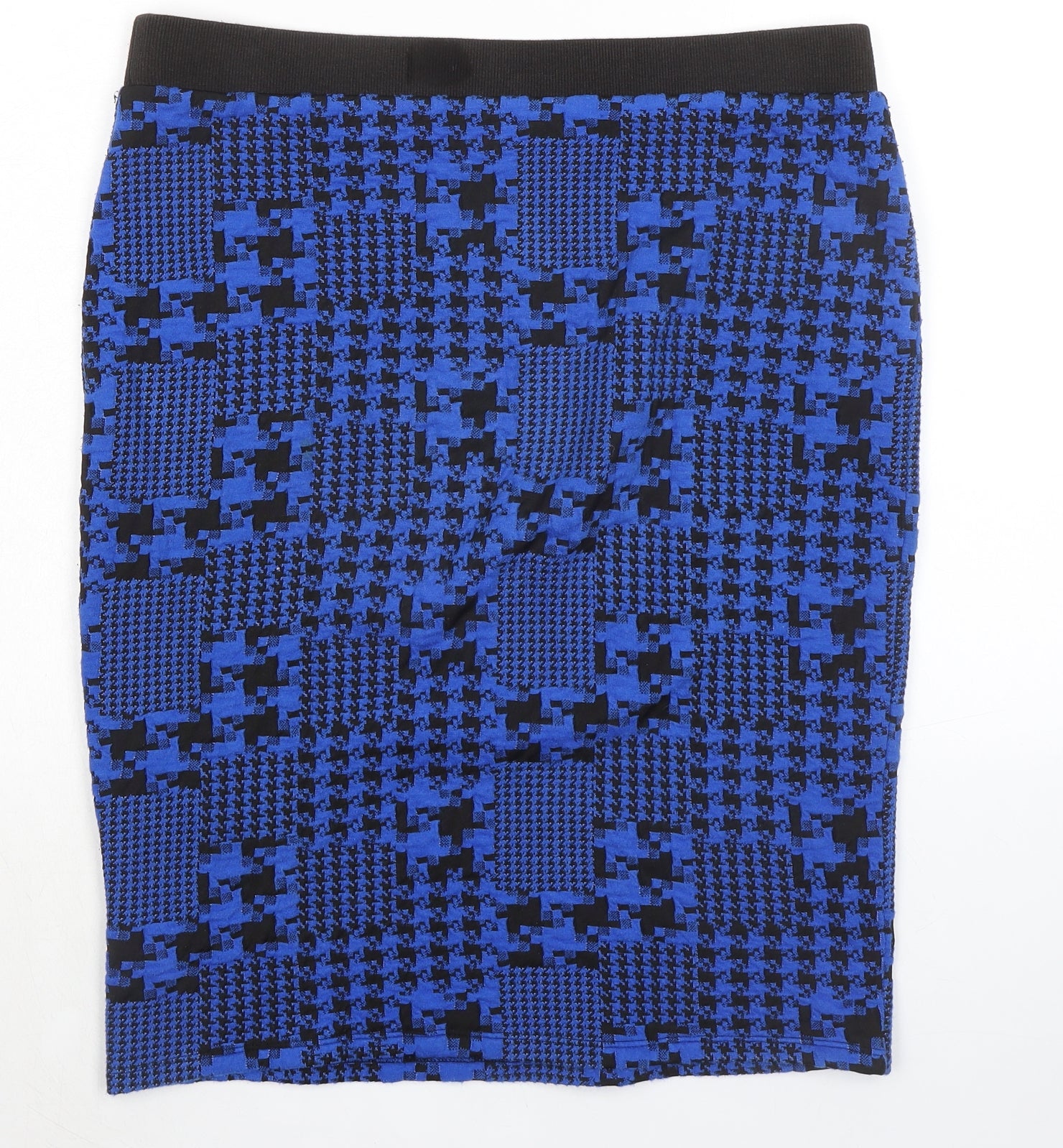 Womens Blue Geometric Polyester Bandage Skirt Size 16 - Houndstooth pattern