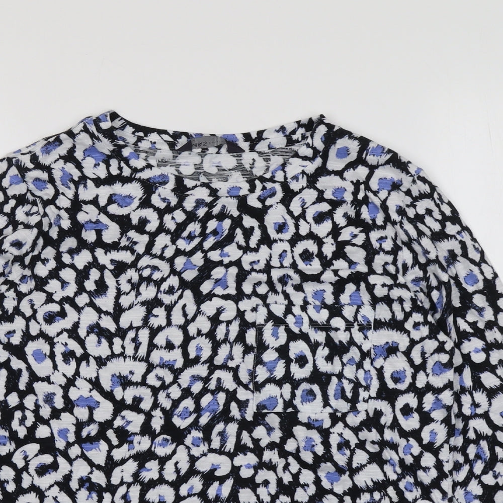 Womens Blue Geometric Polyester Basic Blouse Size 6 Round Neck