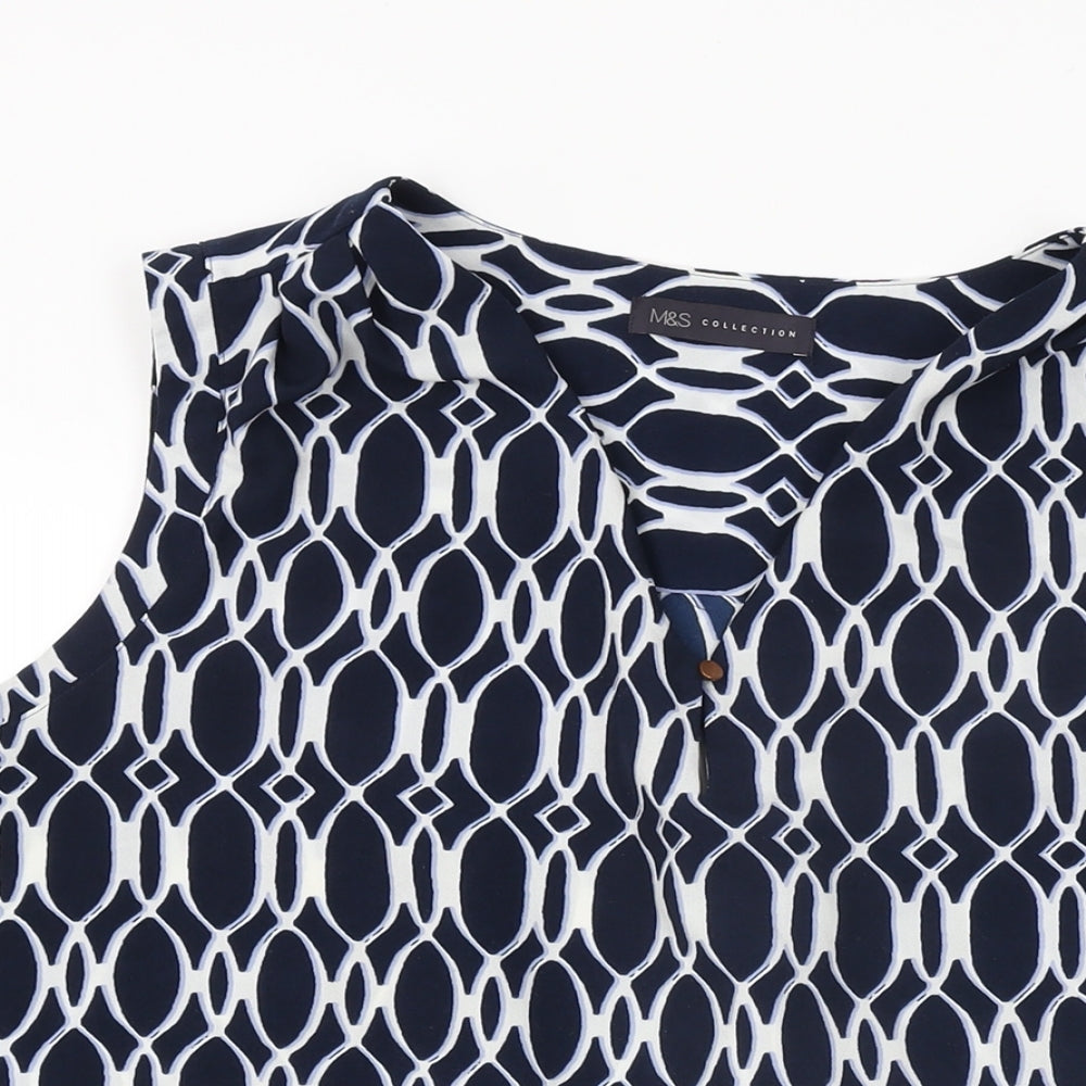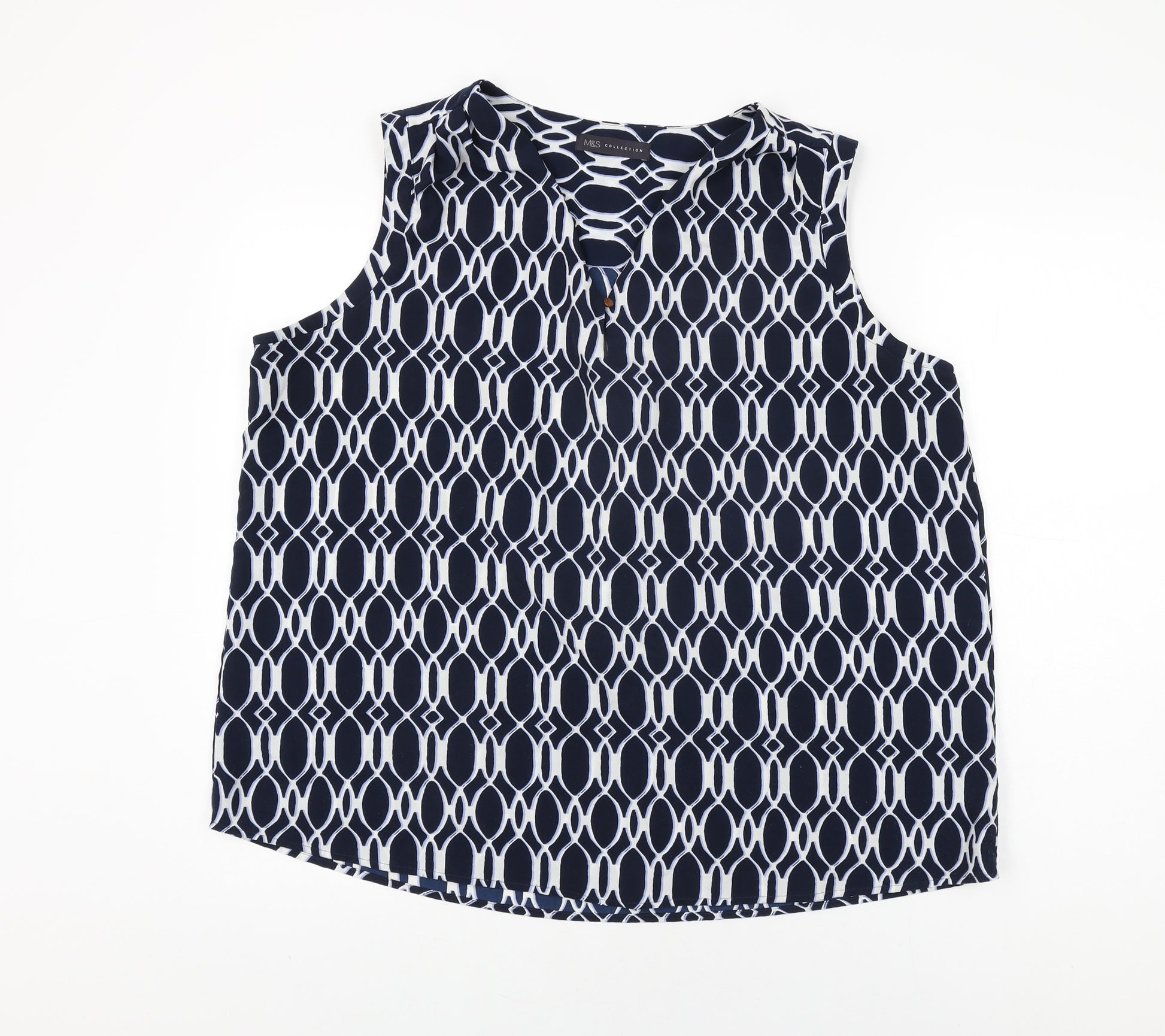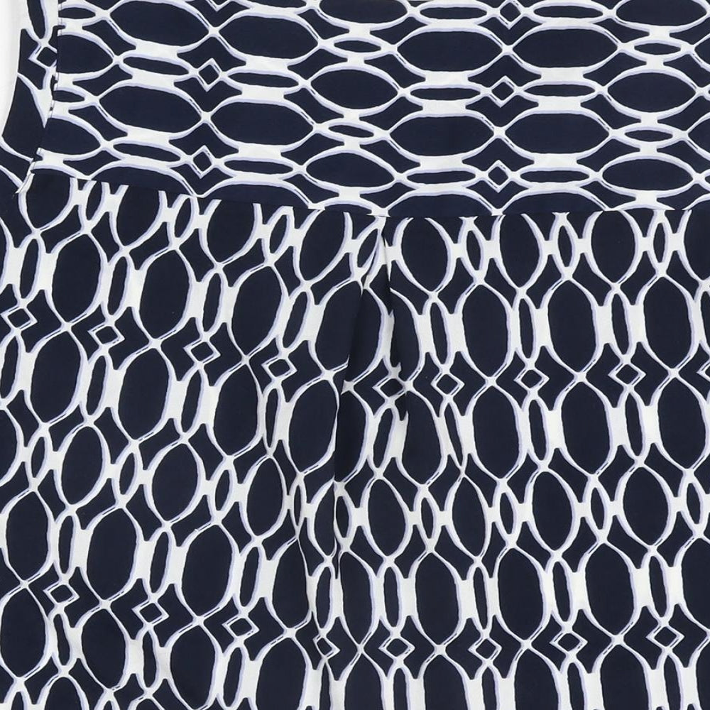 Womens Blue Geometric Polyester Basic T-Shirt Size 20 V-Neck