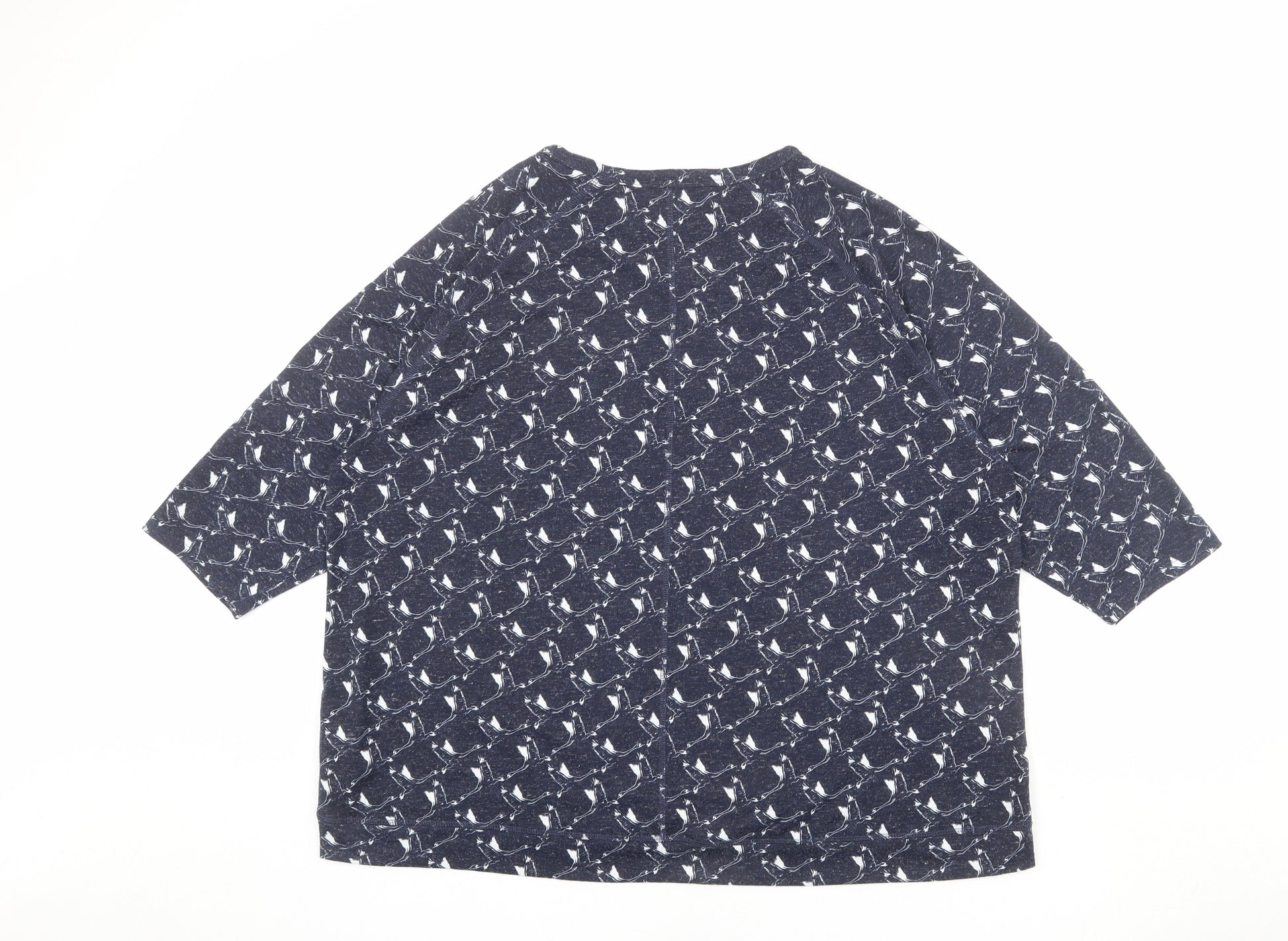 Womens Blue Geometric Polyester Basic T-Shirt Size 22 Round Neck