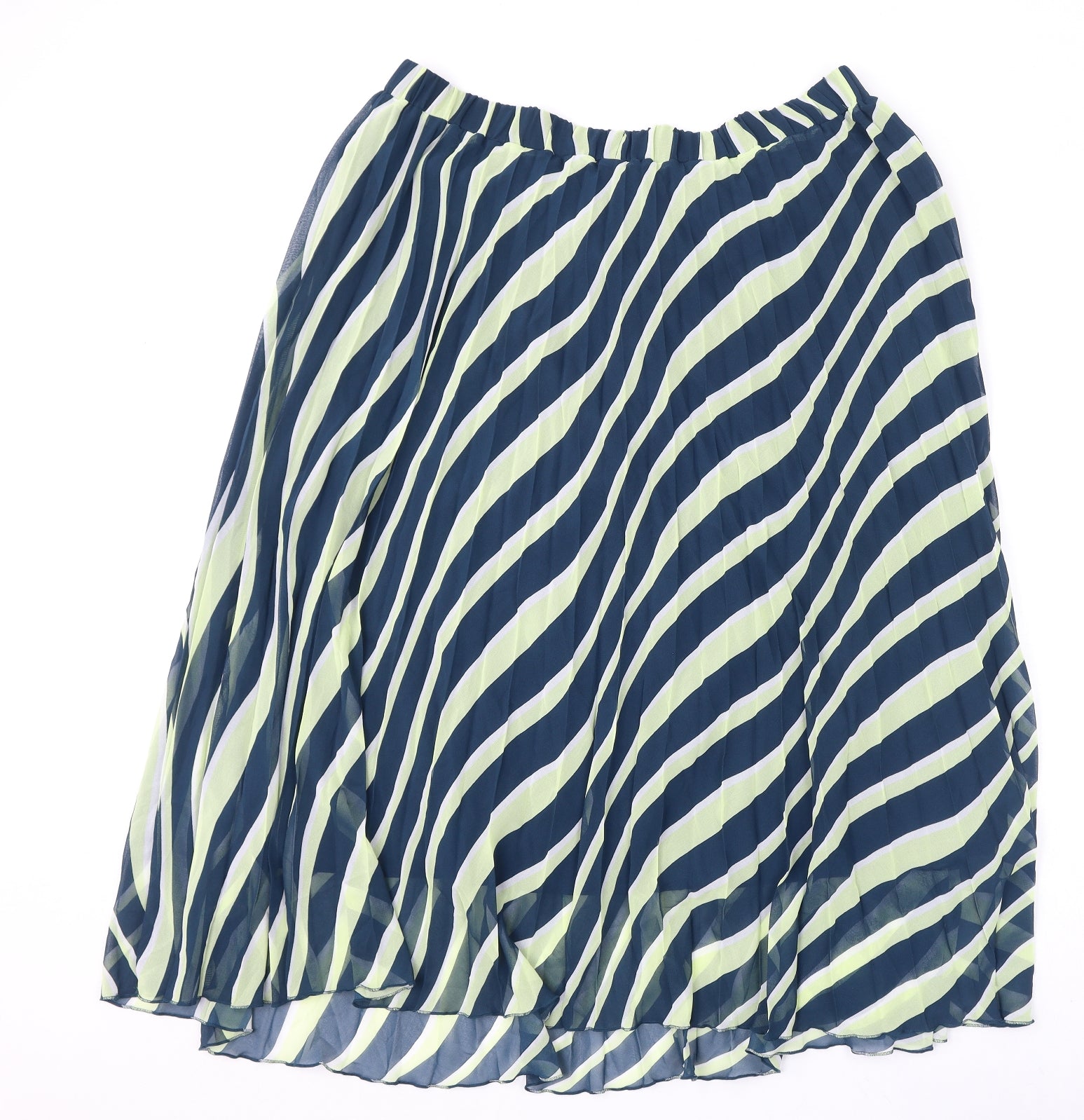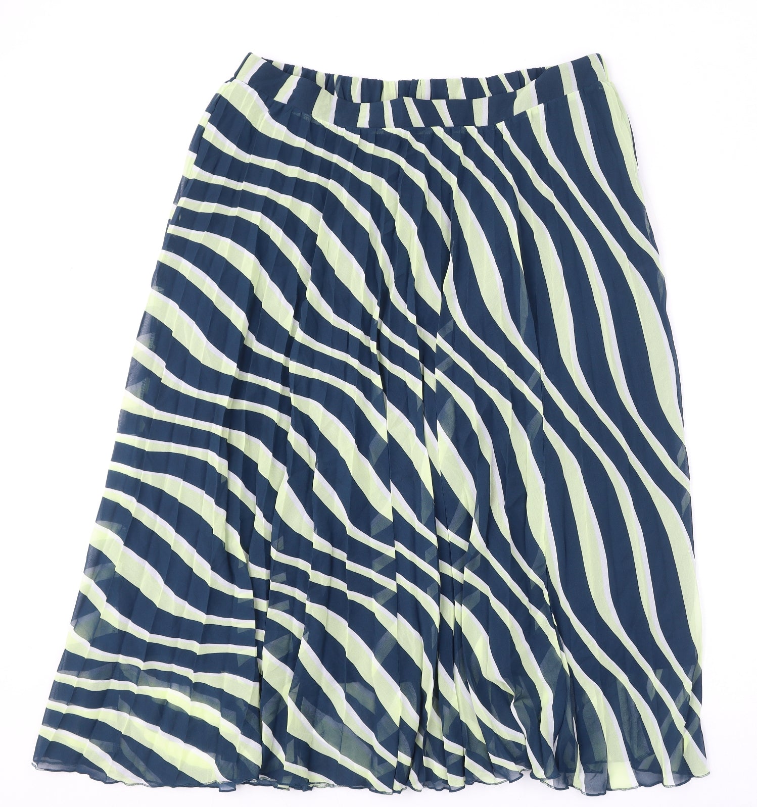 Womens Blue Geometric Polyester Pleated Skirt Size 18
