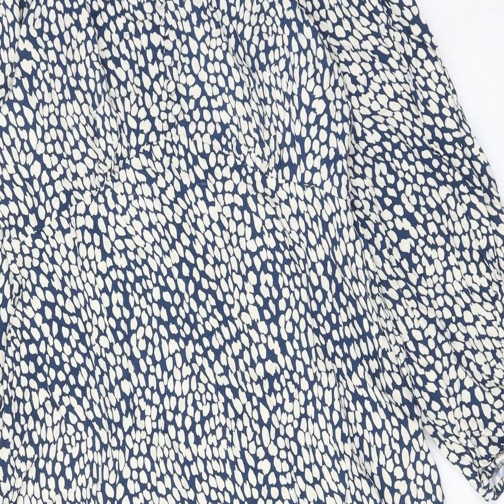 Marks and Spencer Womens Blue Geometric Viscose A-Line Size 14 V-Neck Pullover