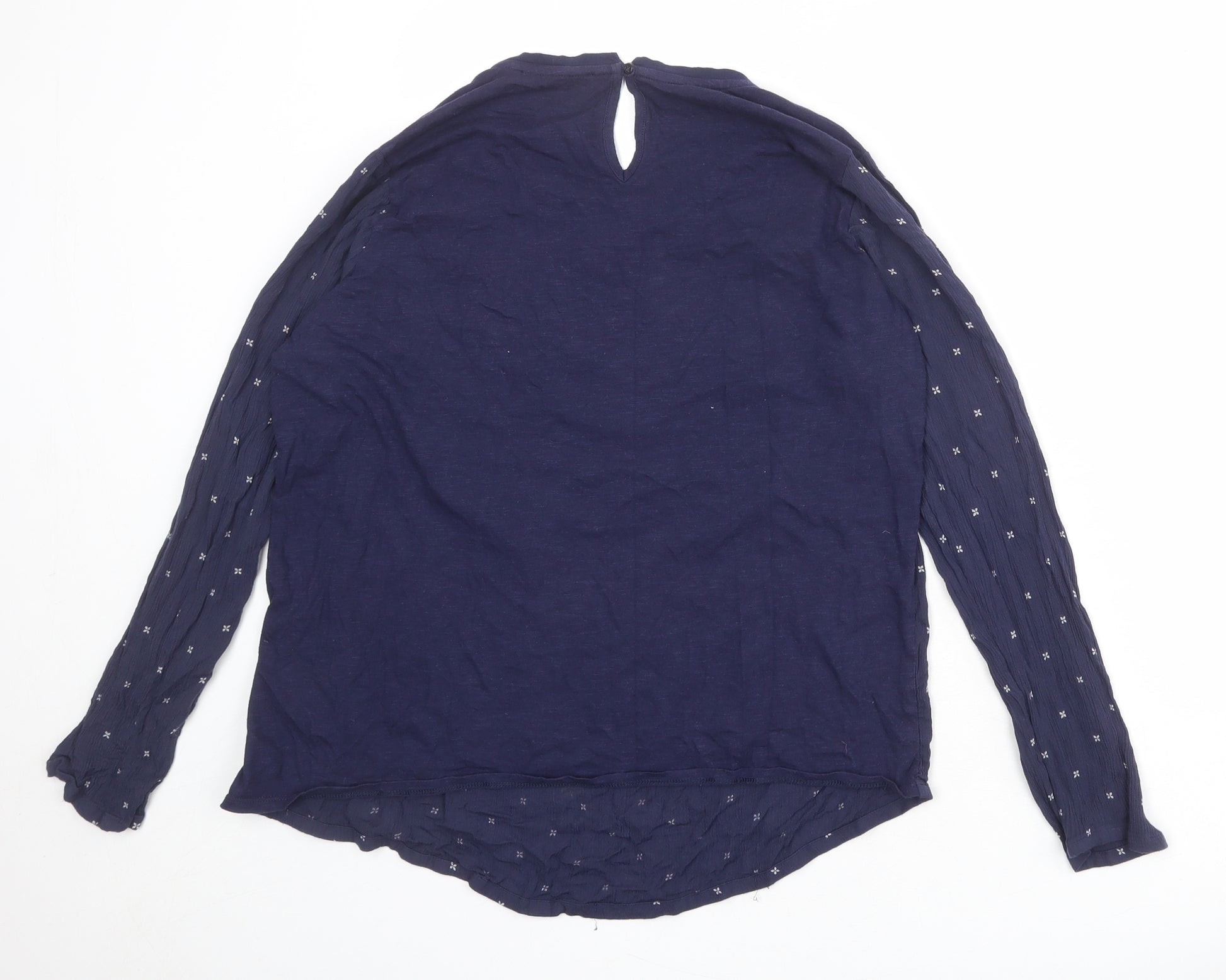 Womens Blue Geometric Viscose Basic Blouse Size 16 Round Neck
