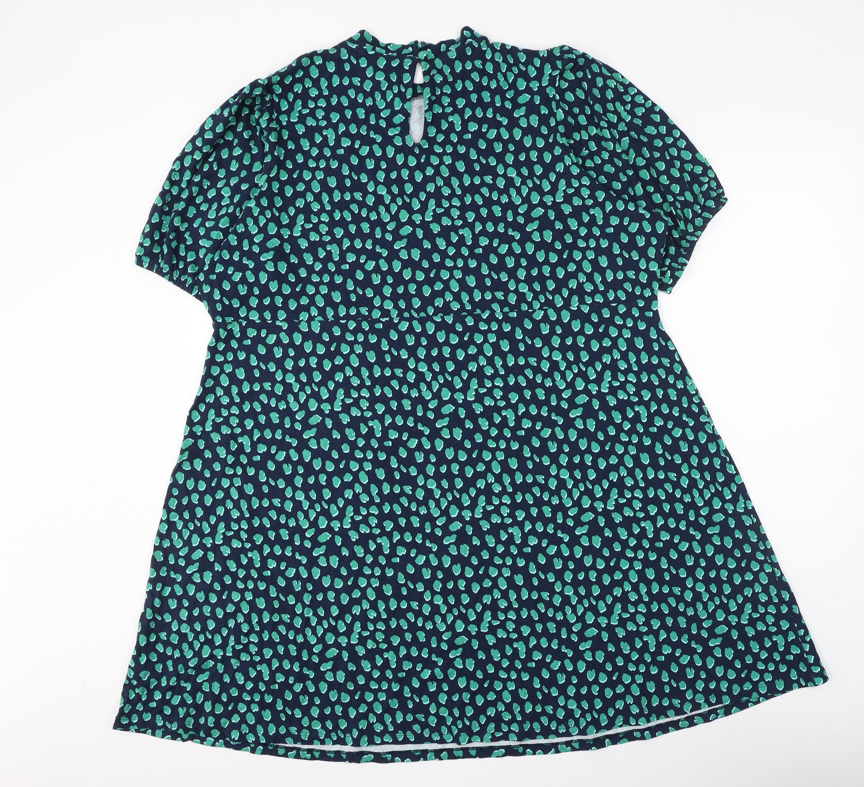 Womens Blue Geometric Viscose Shift Size 24 Round Neck Button