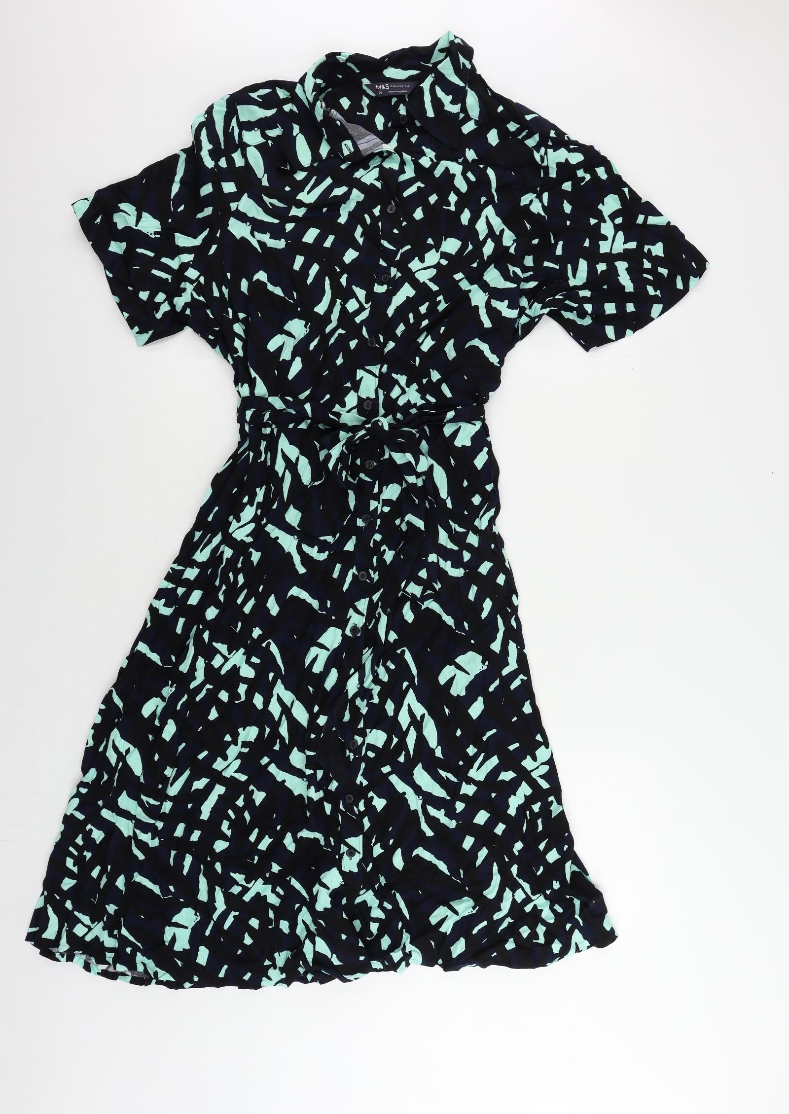 Womens Blue Geometric Viscose Shirt Dress Size 20 Collared Button