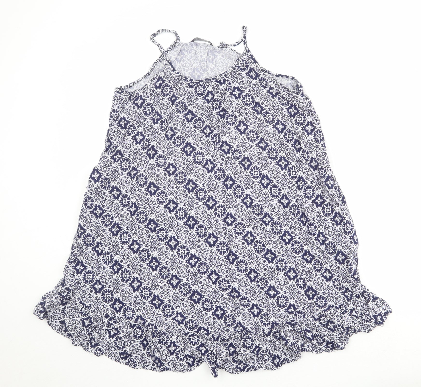Womens Blue Geometric Viscose Slip Dress Size 14 Scoop Neck Pullover