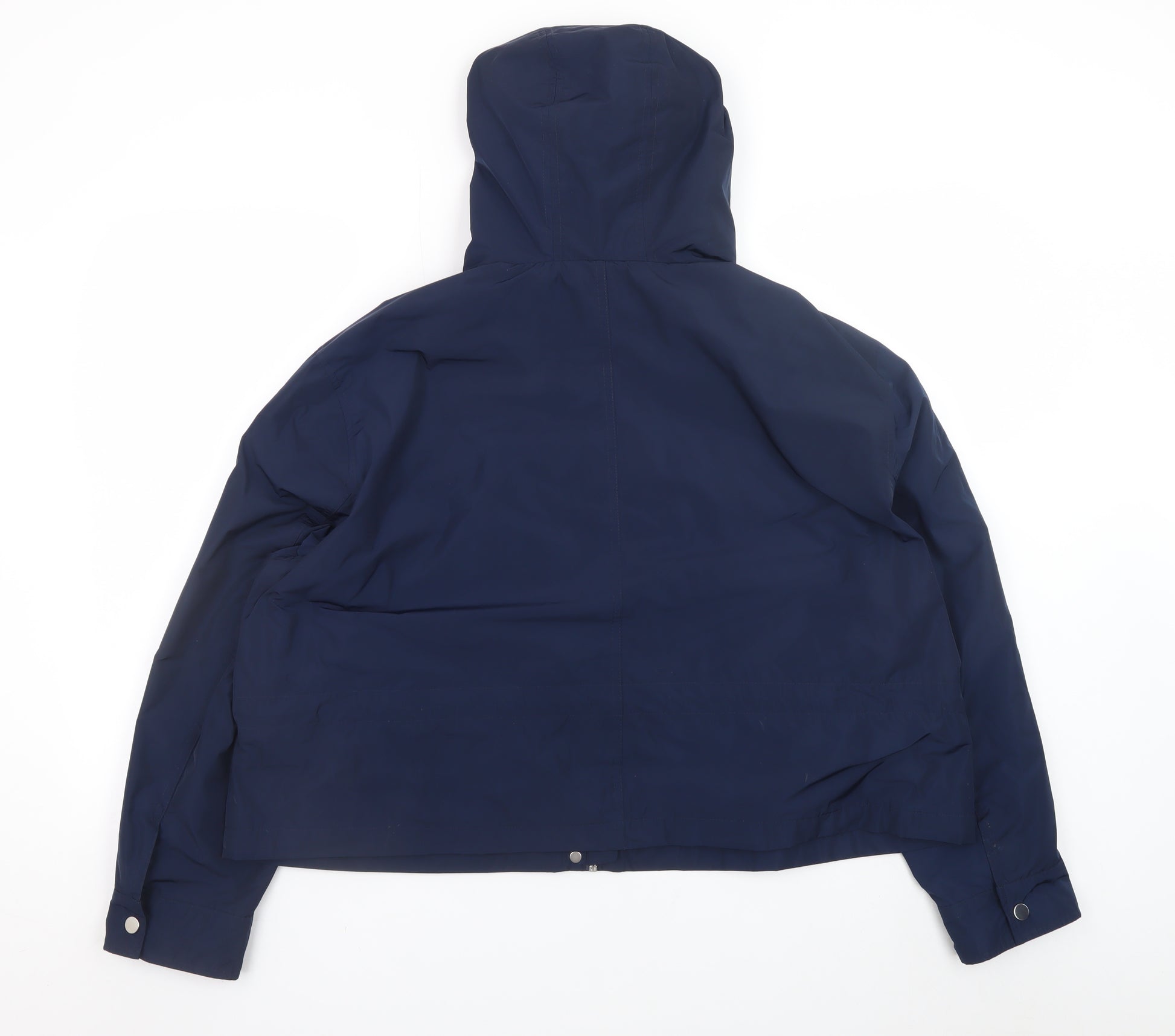 This Marks and Spencer women's hooded jacket is a stylish and practical choice for all-season wear. Crafted from durable and lightweight 100% polyester, it provides reliable wind resistance and comfort for both autumn and winter days. The navy-blue shade adds a classic, timeless appeal, suitable for casual outings, daily wear, and travel. The jacket features a relaxed yet flattering fit and a short cut that provides ease of movement and a contemporary aesthetic. Designed with full zip and snap button closure, it allows flexibility to layer over outfits efficiently. Functional front flap pockets enhance practicality while maintaining a sleek silhouette. A drawstring hood delivers extra protection against rain and wind, making it ideal for unpredictable British weather. The body is fully lined with 100% cotton for added comfort, featuring a soft and breathable structure, while the sleeves are lined in 100% polyester for smooth, easy layering. With clean lines and structured shoulders, this jacket achieves a confident, modern look while staying versatile enough for everyday use. The garment’s durable shell offers an effortless finish, requiring minimal care—easy to machine wash helps maintain its quality. This piece perfectly blends style, function, and quality construction that Marks and Spencer is known for. It pairs effortlessly with jeans, boots, or trainers for a chic yet casual look suitable for city commutes, countryside walks, or laid-back weekends. As it’s in excellent condition, showing minimal wear, this jacket represents great value. A wardrobe essential that brings understated sophistication and practicality to your outerwear collection, ready to keep you comfortable and stylish throughout the seasons.