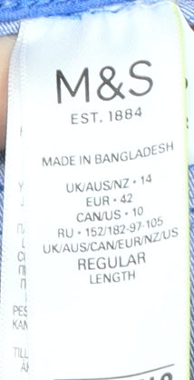 Introducing the stylish and versatile Marks and Spencer women's jeggings in a vibrant blue colour, crafted to offer both comfort and fashion. These jeggings, styled in a flattering size 14, are part of the Marks and Spencer collection, renowned for quality and contemporary designs. Made with a delicate blend of cotton, polyester, and elastane, these jeggings ensure a snug yet flexible fit suitable for various body types. The use of premium denim fabric promises durability, making it a reliable choice for everyday wear. Perfectly suited for casual outings or dressing up with a chic blouse, these jeggings cater to a wide range of occasions. Designed with the modern woman in mind, they feature a sleek, no-pattern finish, making them an essential addition to any wardrobe. Whether paired with trainers for a casual look or heels for a night out, these jeggings offer endless styling possibilities.
