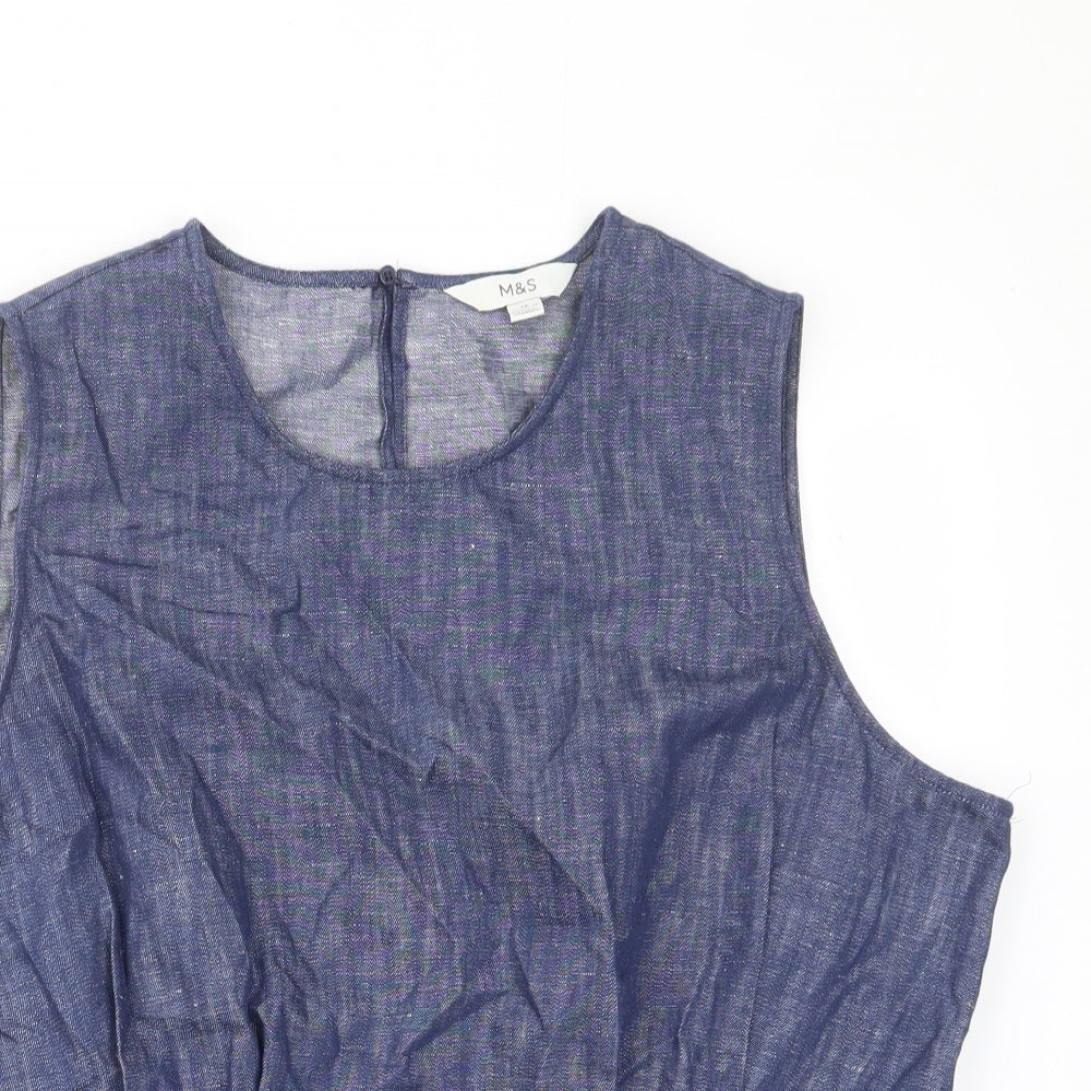 Womens Blue Linen Basic Tank Size 18 Crew Neck - Pleated