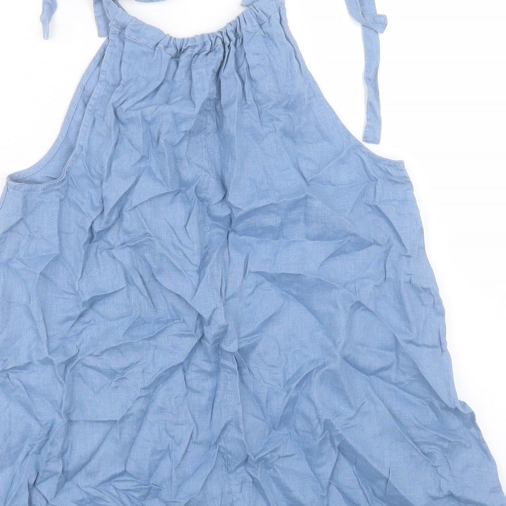 Womens Blue Linen Basic Tank Size 6 Crew Neck