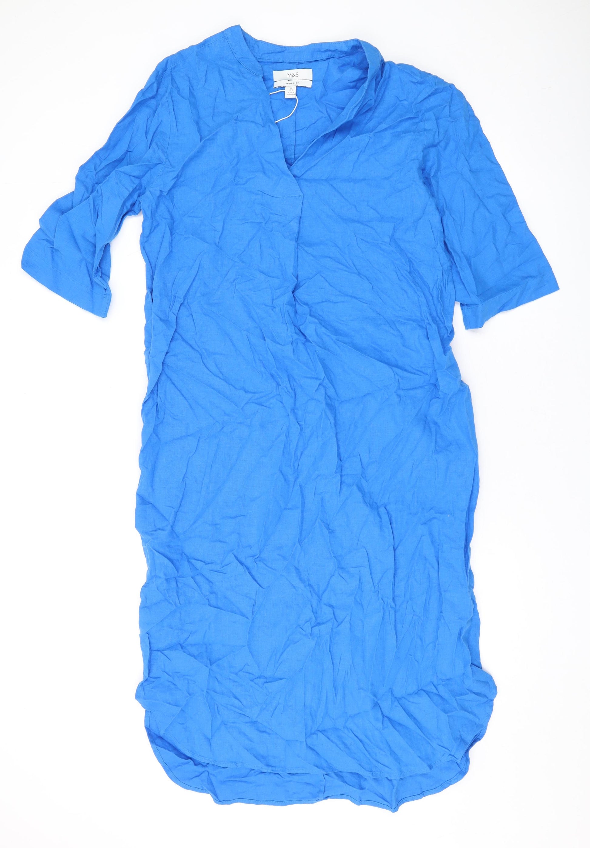 Womens Blue Linen Maxi Size 10 V-Neck Pullover