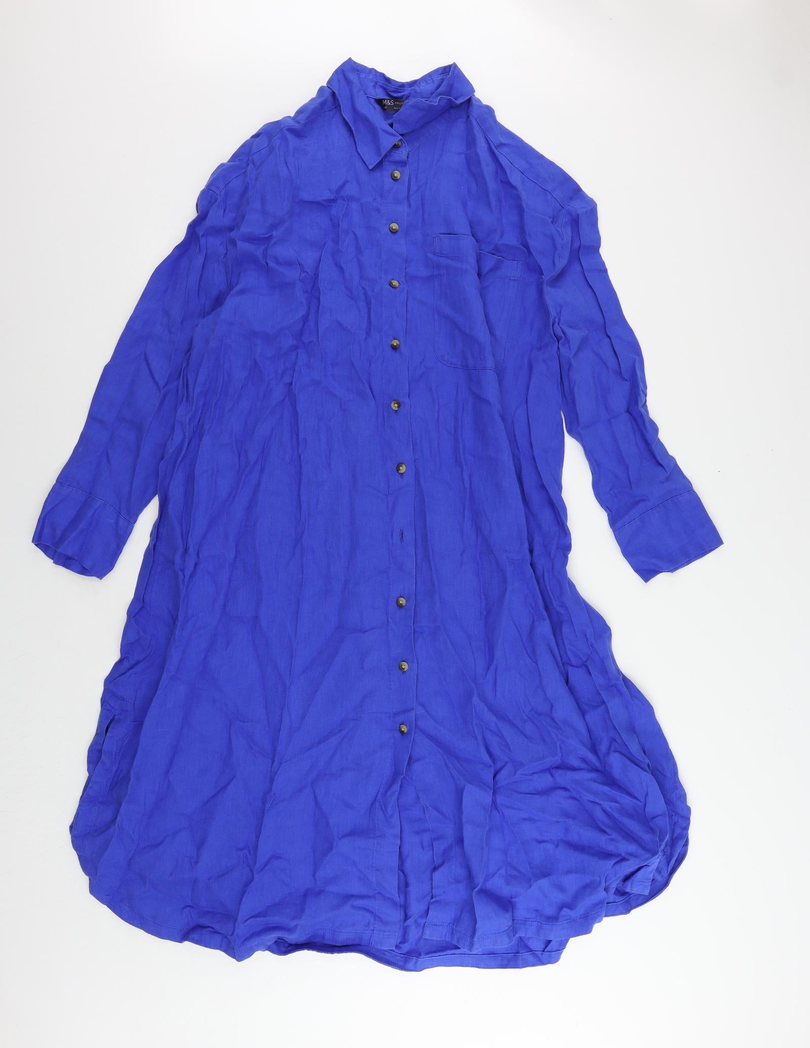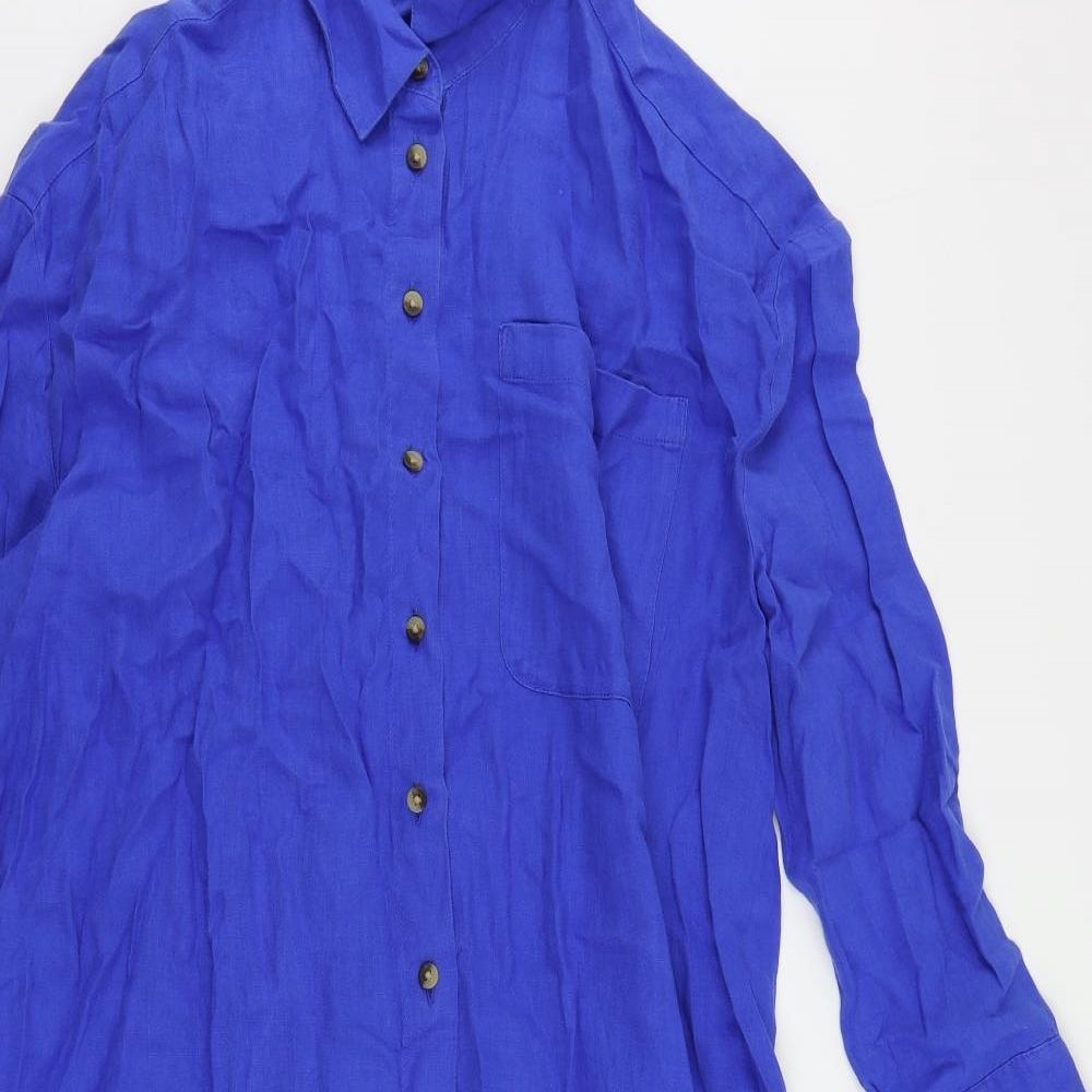 Womens Blue Linen Shirt Dress Size M Collared Button