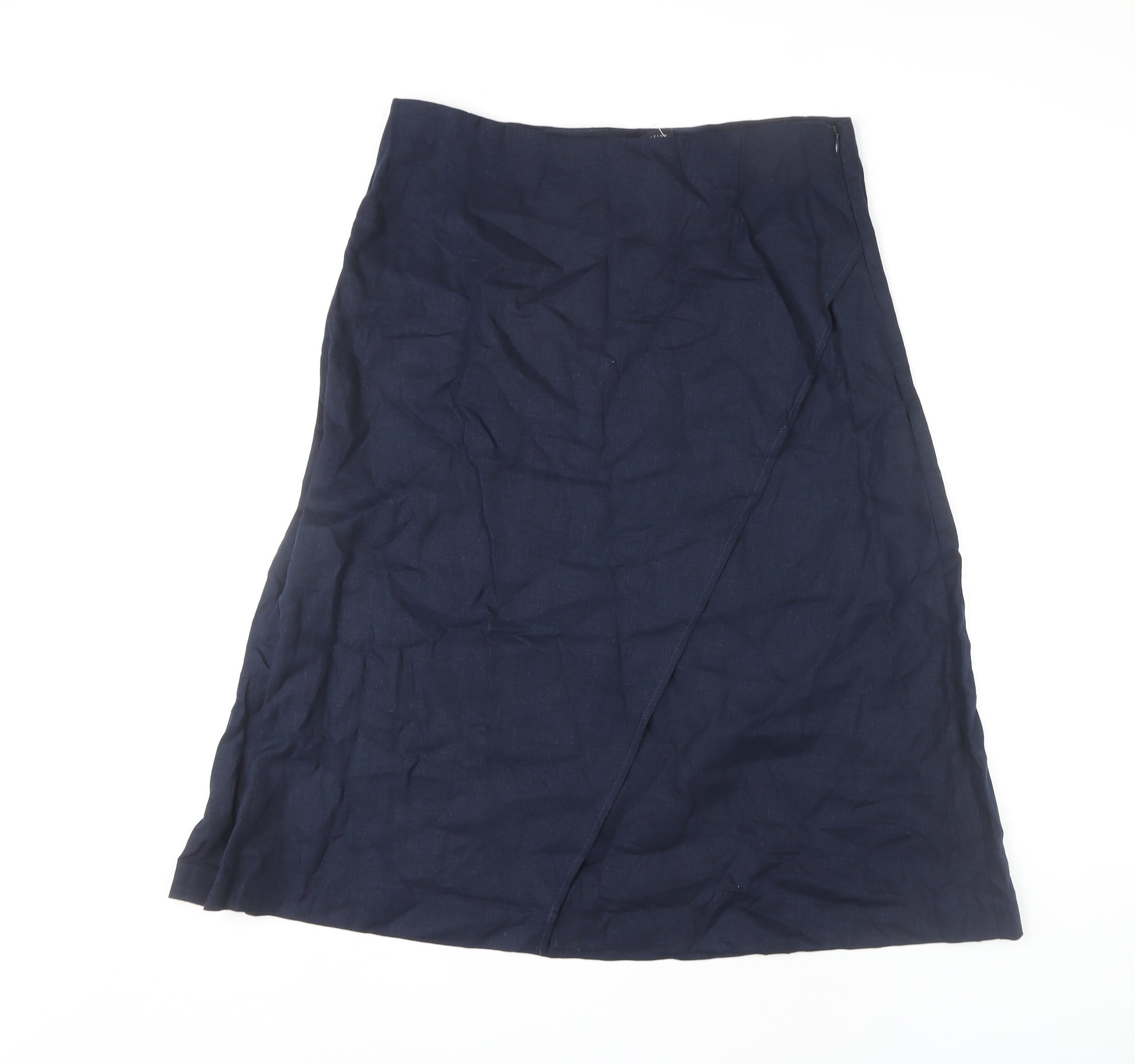 Step into understated elegance with this Marks and Spencer Women's Blue Linen Skirt, a wardrobe staple that seamlessly combines comfort and style. Designed for the modern woman, this skirt in a rich navy hue is perfect for versatile styling, whether you're heading to a casual brunch or a day at the office. This skirt features a regular size 14 fit, ensuring a comfortable and flattering silhouette for everyday wear. Crafted from a high-quality blend of 65% flax (linen) and 45% viscose, it's not only breathable and lightweight but also offers a sophisticated drape. The material blend allows for breathability, making it ideal for all seasons. The skirt is designed with a simple zip closure for ease of wear, while its machine washable nature means you can maintain its crisp appearance with minimal effort. While the skirt is devoid of overpowering patterns, its classic design ensures it remains a timeless piece in your collection. Perfect for the style-savvy woman, this linen skirt embodies casual elegance, effortlessly adapting to both laid-back and professional settings. Pair it with a blouse for a polished look at work, or a cosy jumper for a relaxed weekend vibe. Embrace the timeless appeal of Marks and Spencer with this chic blue skirt, and elevate your everyday style.