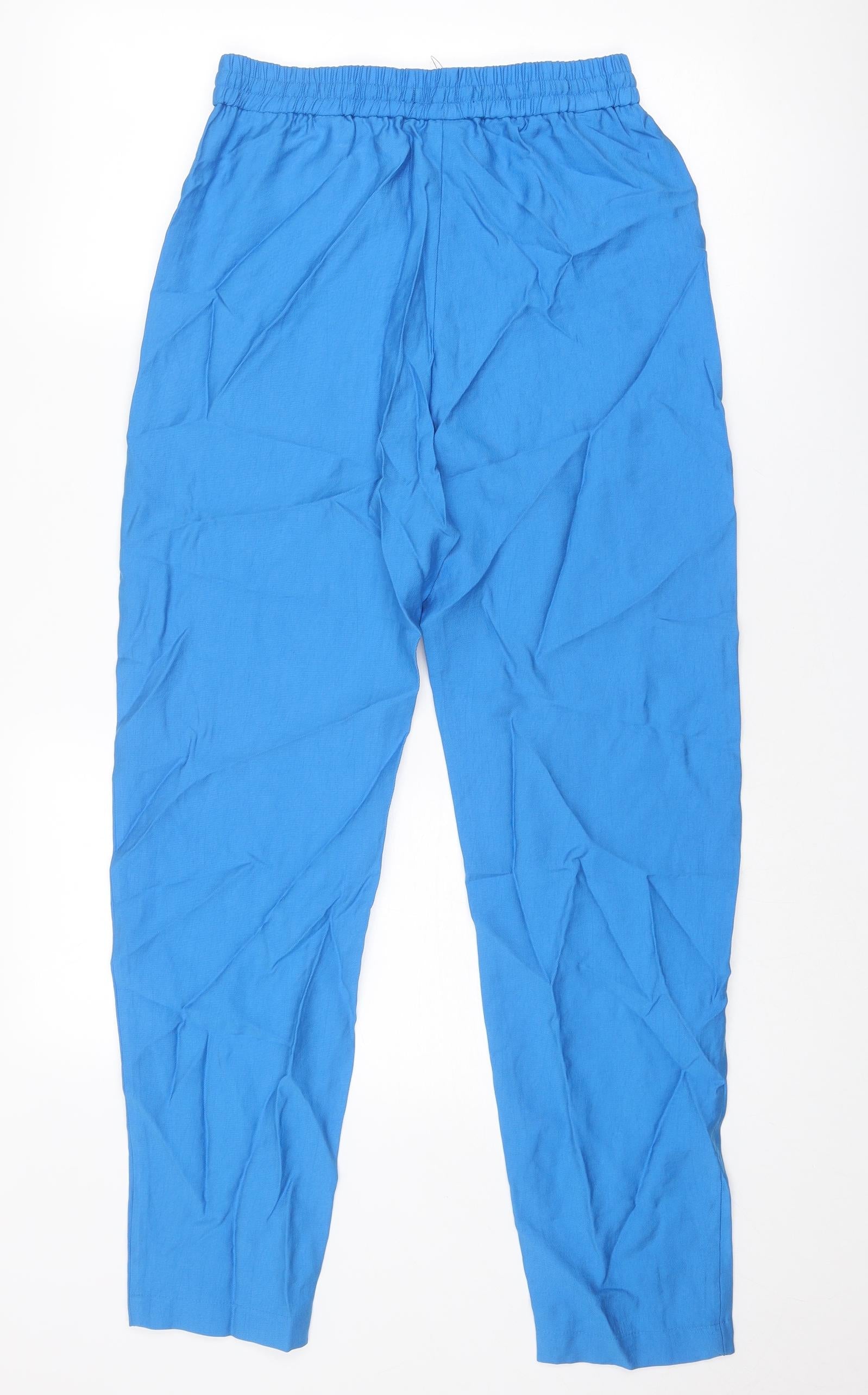 Womens Blue Lyocell Jogger Trousers Size 8 Regular Drawstring