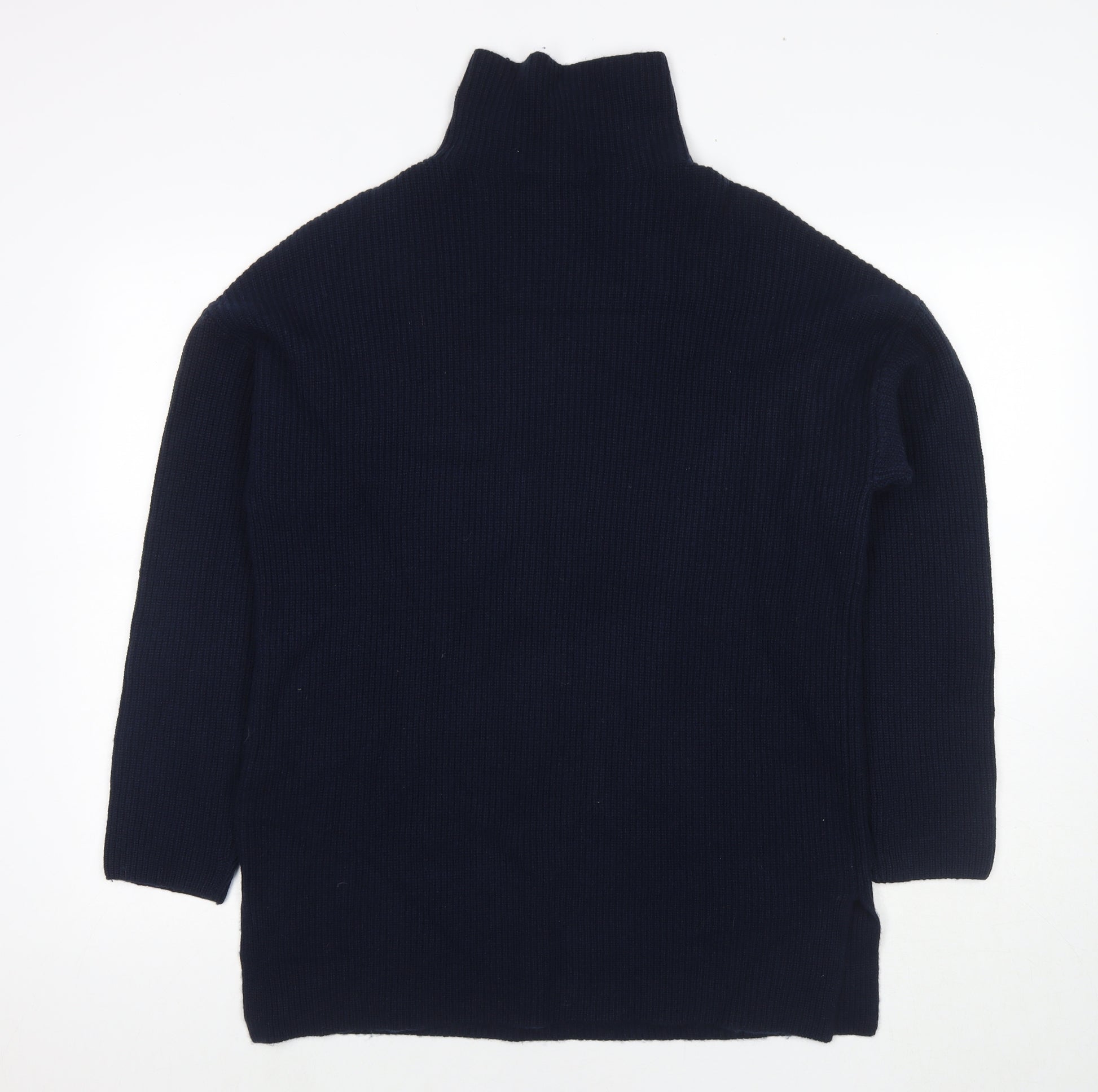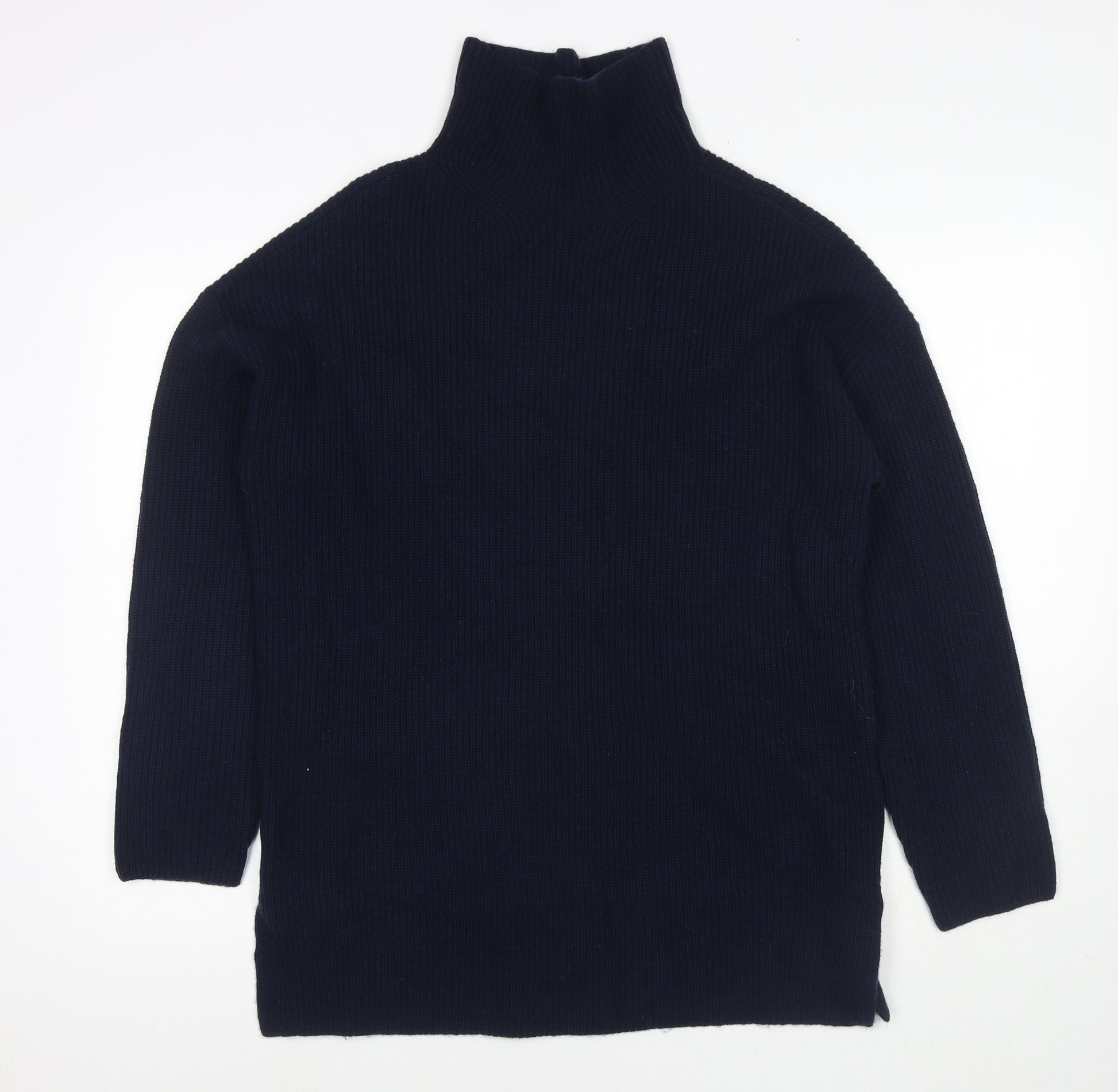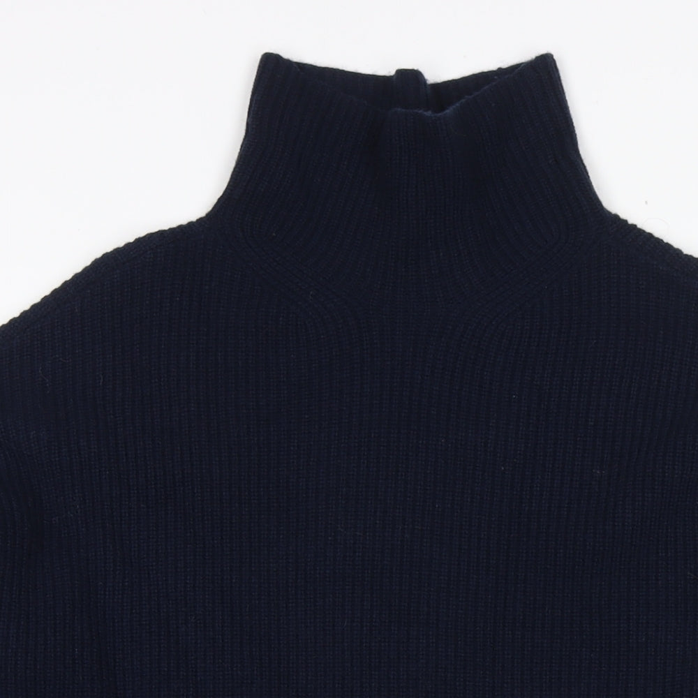 Womens Blue Mock Neck Wool Pullover Jumper Size M