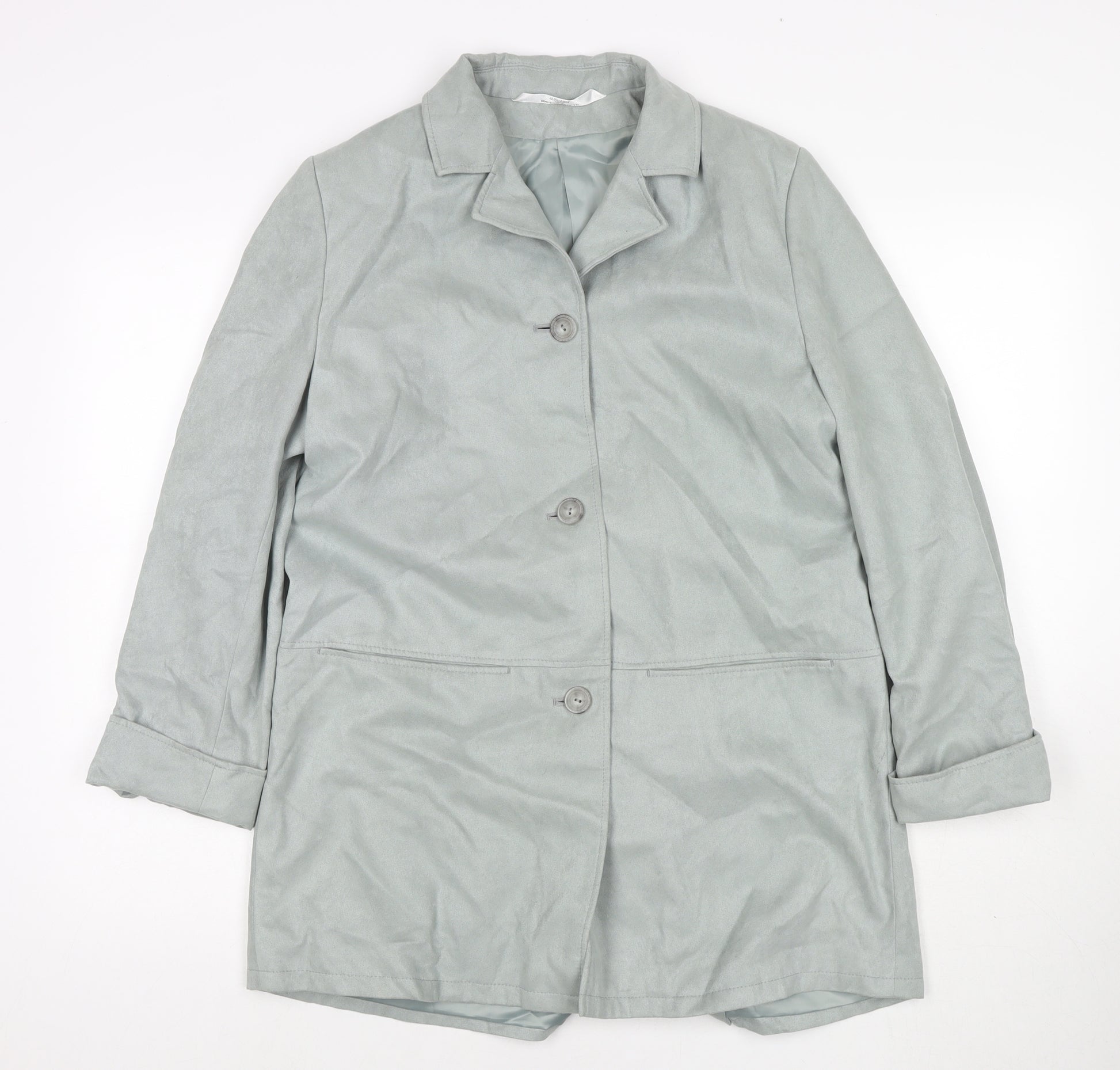 Womens Blue Overcoat Coat Size 10 Button - Suede Type