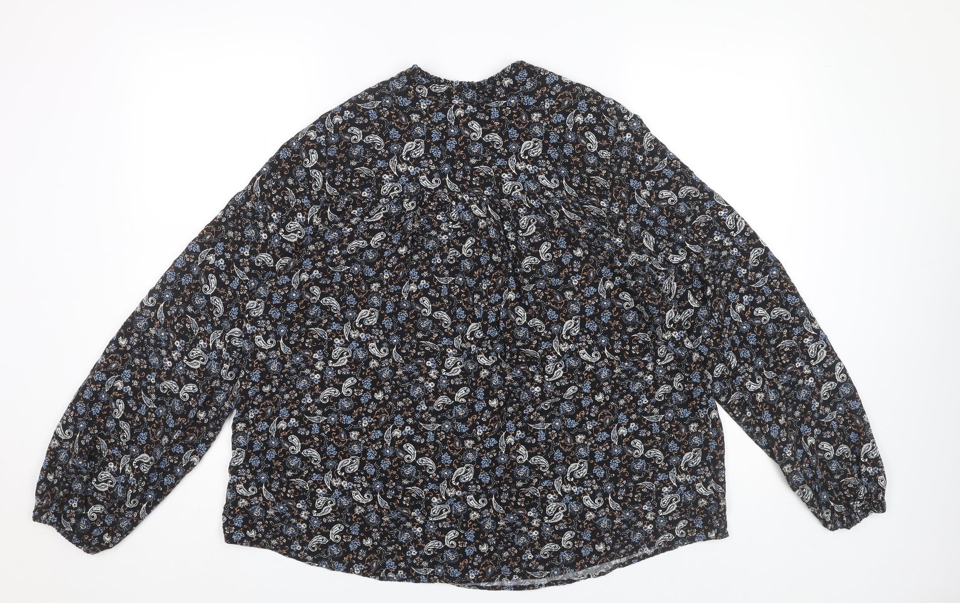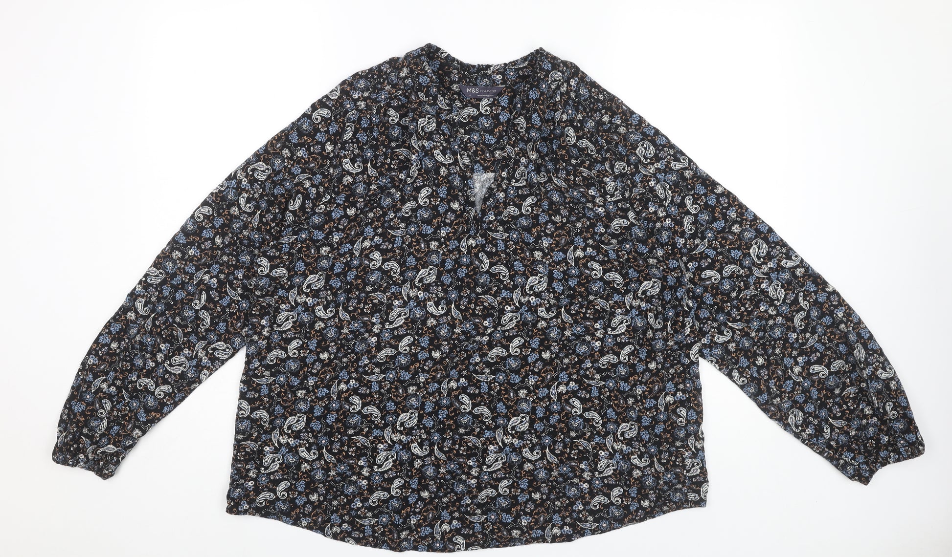Elevate your wardrobe with this exquisite Marks and Spencer women's blouse. Crafted from luxurious viscose, this piece boasts a striking paisley pattern in vibrant blue hues. Designed for the modern woman, this long-sleeved blouse offers elegance and comfort in a regular size 14, perfect for everyday wear or special occasions.The blouse embodies a timeless style, making it a versatile addition to any ensemble. Whether paired with smart trousers for the office or dressed down with jeans for a casual brunch, this blouse ensures you make a stylish impression. Machine washable for easy care, this is an ideal choice for those who appreciate both fashion and practicality.Made without sacrificing comfort, the soft viscose fabric gently drapes, creating a flattering silhouette. With no visible tags, the blouse is in excellent condition, free from any stains or rips, guaranteeing the highest quality. Discover the joy of effortless style with this key piece from Marks and Spencer—a brand synonymous with sophistication and charm. Don't miss the opportunity to add this to your collection. Secure it today and experience the perfect blend of classic and contemporary fashion.