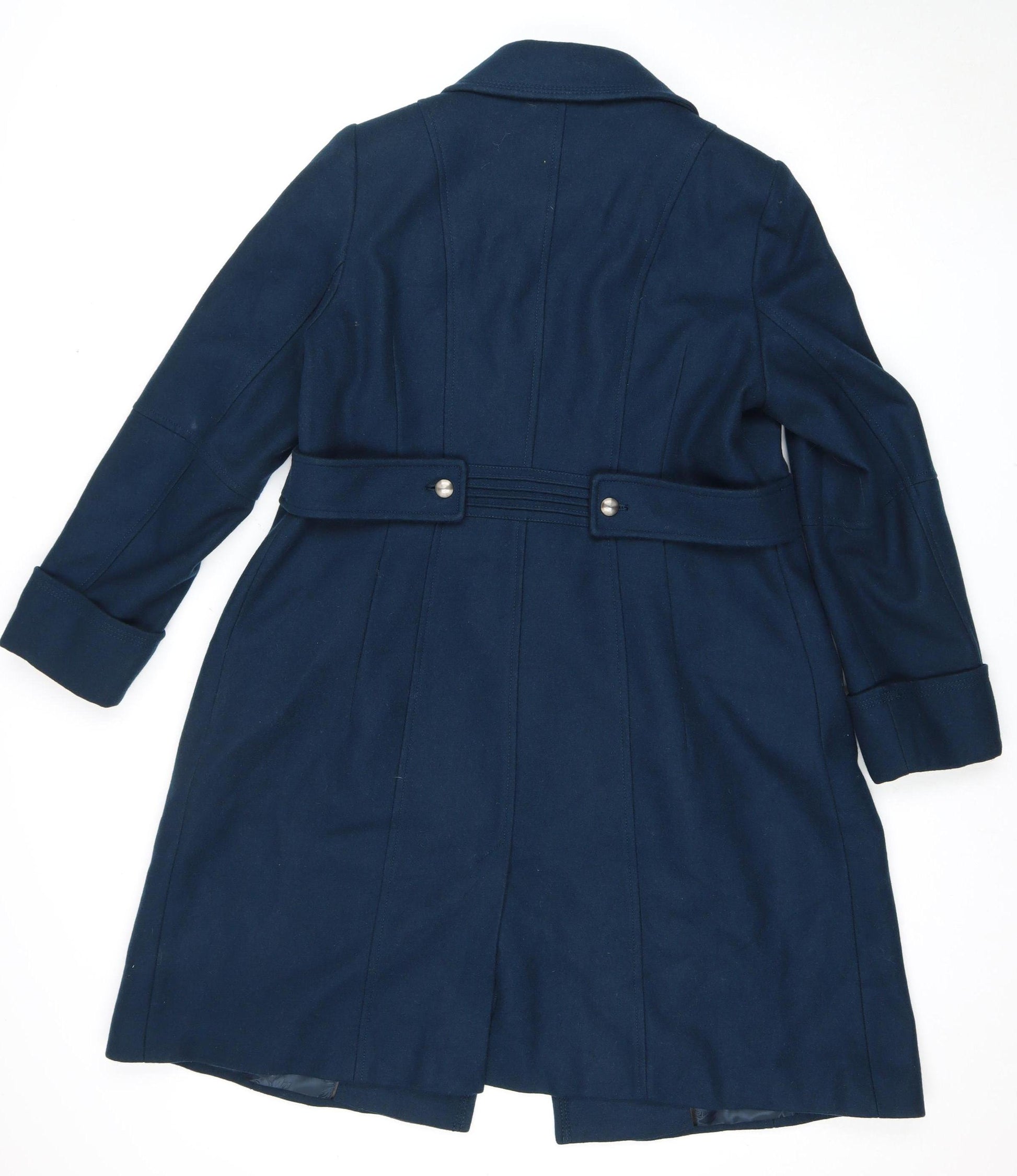 Discover classic style and warmth with this Marks and Spencer Per Una women's pea coat. Crafted from a luxurious wool blend in a rich blue hue, this mid-length coat offers elegance and versatility for everyday wear. Perfectly tailored for a regular fit, it ensures comfort while still maintaining a polished look. Ideal for both autumn and winter, the coat is fully lined with a soft polyester fabric, providing an additional layer of insulation against chilly weather. Notable for its timeless double-breasted button closure, this coat exudes understated sophistication. The long sleeves and mid-length cut make it a practical choice for layering over your favourite outfits when the temperature drops. Whether you're heading to the office or enjoying a casual day out, this versatile piece effortlessly enhances your wardrobe. With no visible signs of wear or damage, this coat remains in excellent condition, ready to become a reliable staple in your collection. Machine washable, it offers convenience without compromising on style. Embrace the classic design and contemporary comfort of this Marks and Spencer coat, crafted to elevate your seasonal wardrobe.
