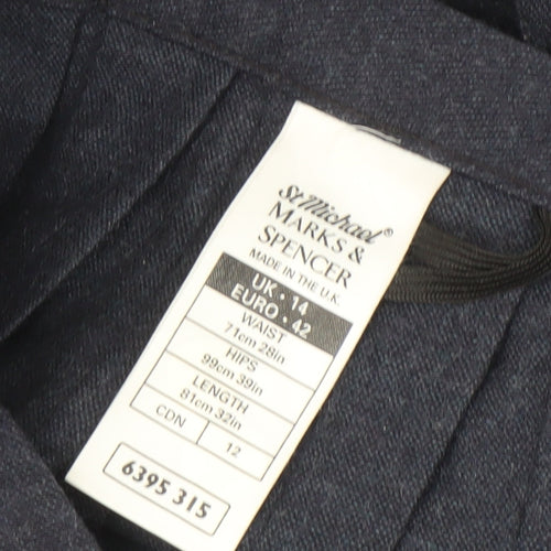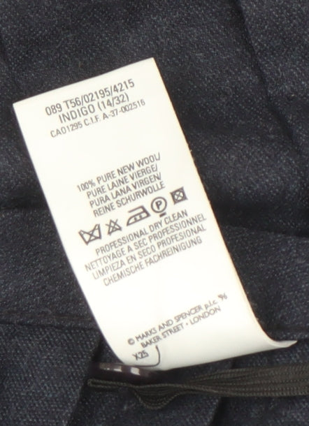 Marks and Spencer Women Blue Wool Blend Pencil Skirt Size 14