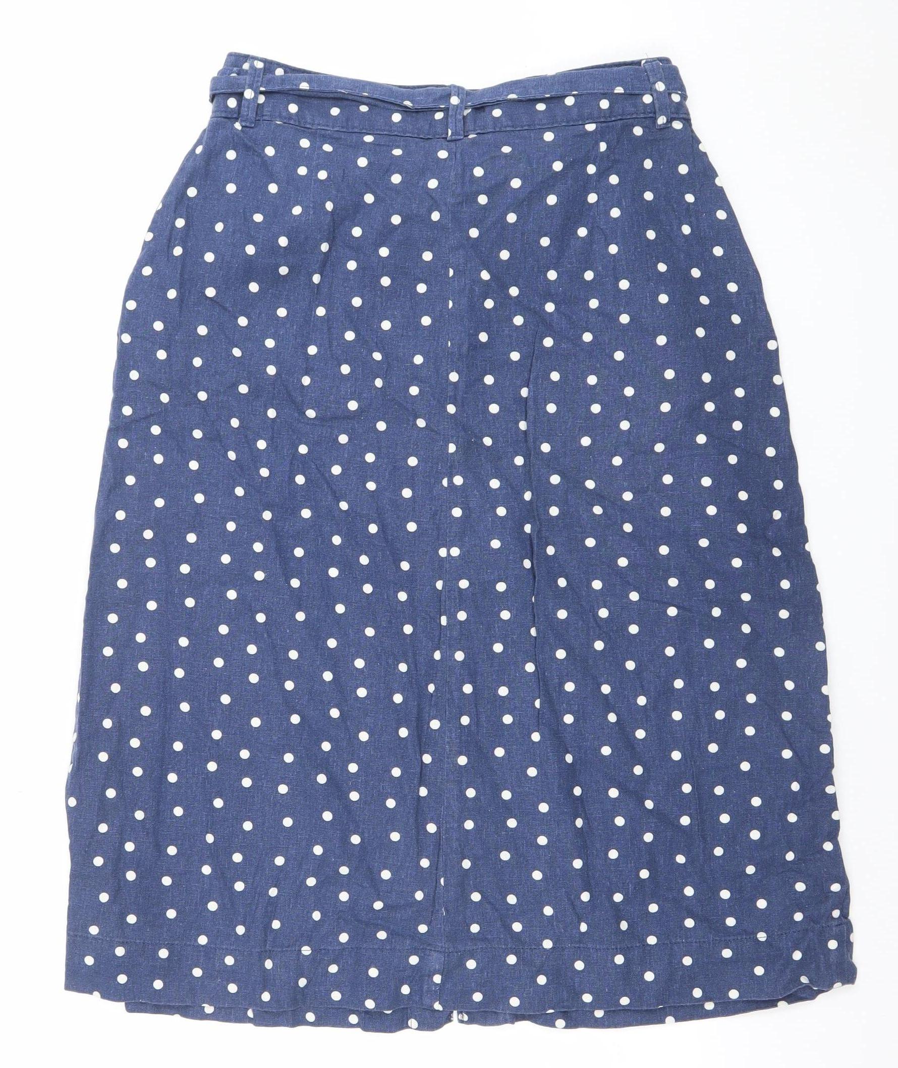 Womens Blue Polka Dot Linen Midi A-Line Skirt Size 12