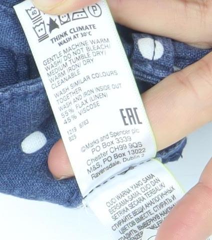 Step into timeless style with this lovely Marks and Spencer women’s A-line skirt in a charming blue and white polka dot print. Crafted from a natural blend of 55% linen and 45% viscose, it offers exceptional comfort, breathability, and a lightweight feel—perfect for warm spring and summer days. The midi length flatters the figure while providing versatile wearability for a range of occasions, from casual outings to leisurely travel adventures. Featuring a flattering button front fastening, matching fabric tie belt, and practical side pockets, this skirt combines classic silhouette details with everyday functionality. Its breathable linen texture ensures easy comfort, while the polka dot pattern adds a playful vintage-inspired touch that never goes out of style. Designed for women who value both comfort and charm, this mid-rise skirt is a perfect staple for a relaxed yet polished look. Team it with a plain blouse or crisp white tee for effortless chic, or pair it with a light knit for cooler evenings. Machine washable for easy care and made to the high standards of Marks and Spencer quality, this skirt is ready to wear and enjoy. Lightly worn but in excellent condition with no visible flaws, it promises plenty of life and style left to give. This Marks and Spencer linen blend skirt is a must-have wardrobe addition for those seeking breathable fabrics, easy elegance, and timeless style all in one piece. Ideal for everyday wear, holidays, or throwing on for a weekend outing—this is a skirt you'll reach for time and again.