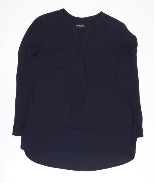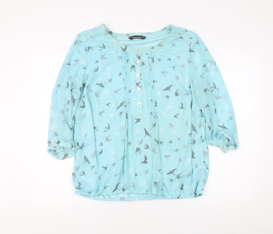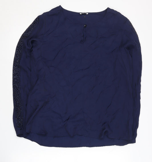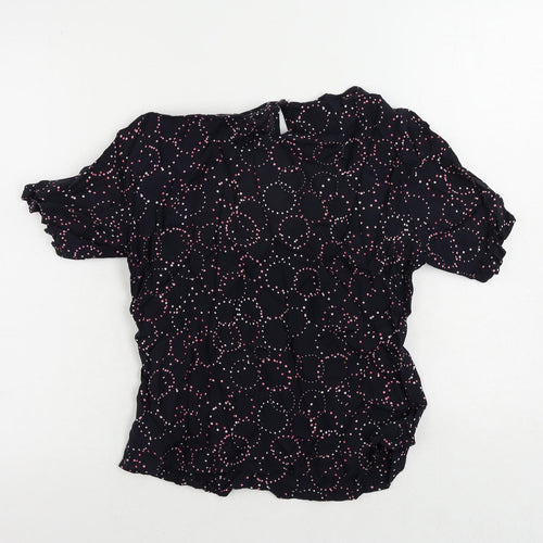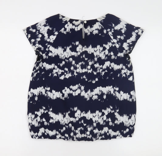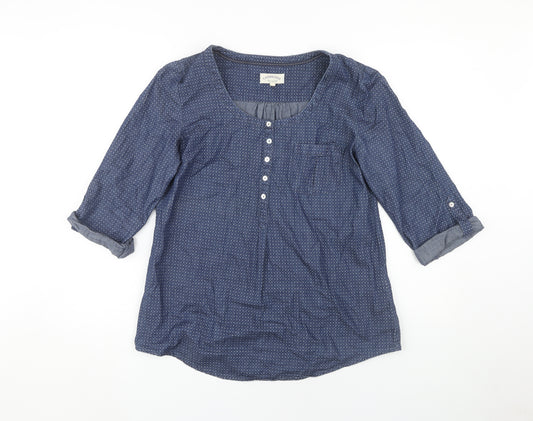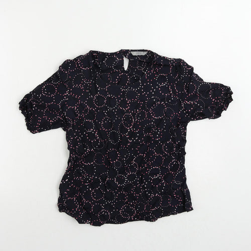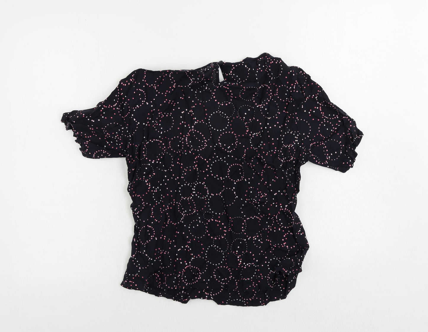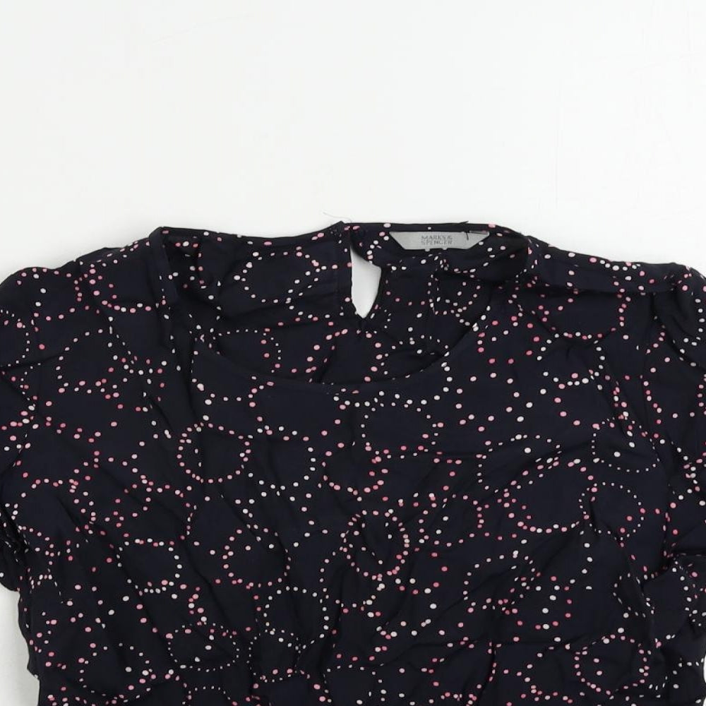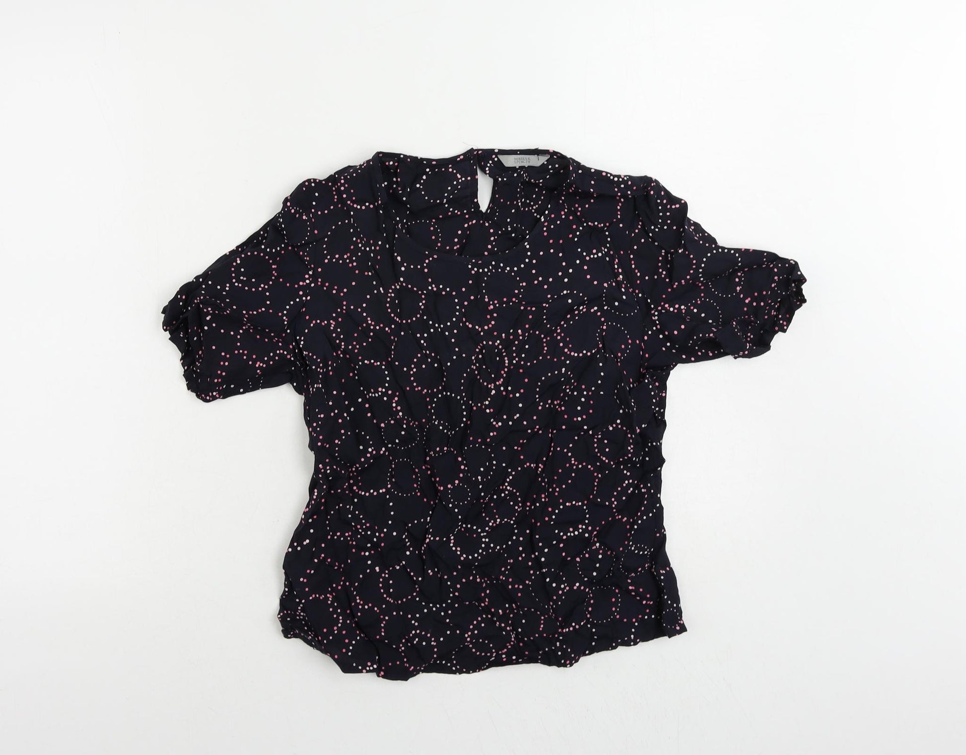 Womens Blue Polka Dot Viscose Basic Blouse Size 12 Round Neck