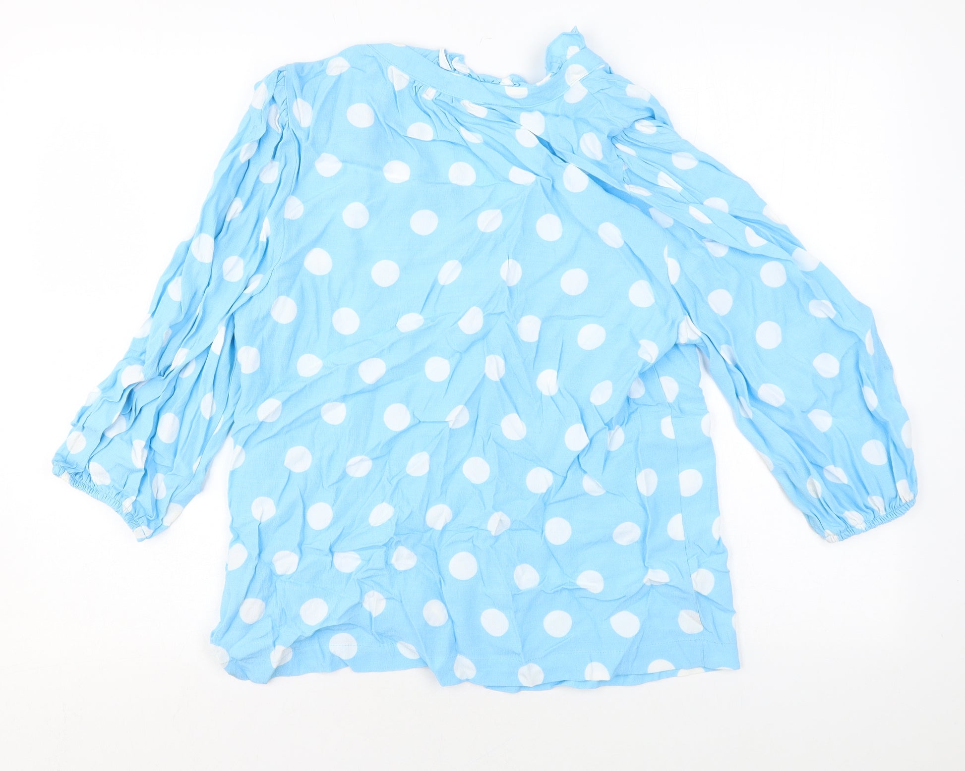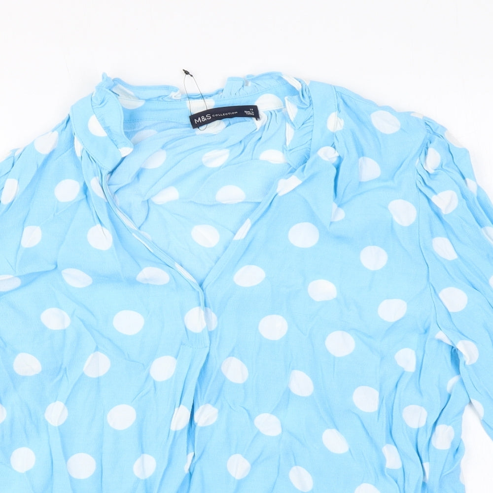 Womens Blue Polka Dot Viscose Basic Blouse Size 14 V-Neck
