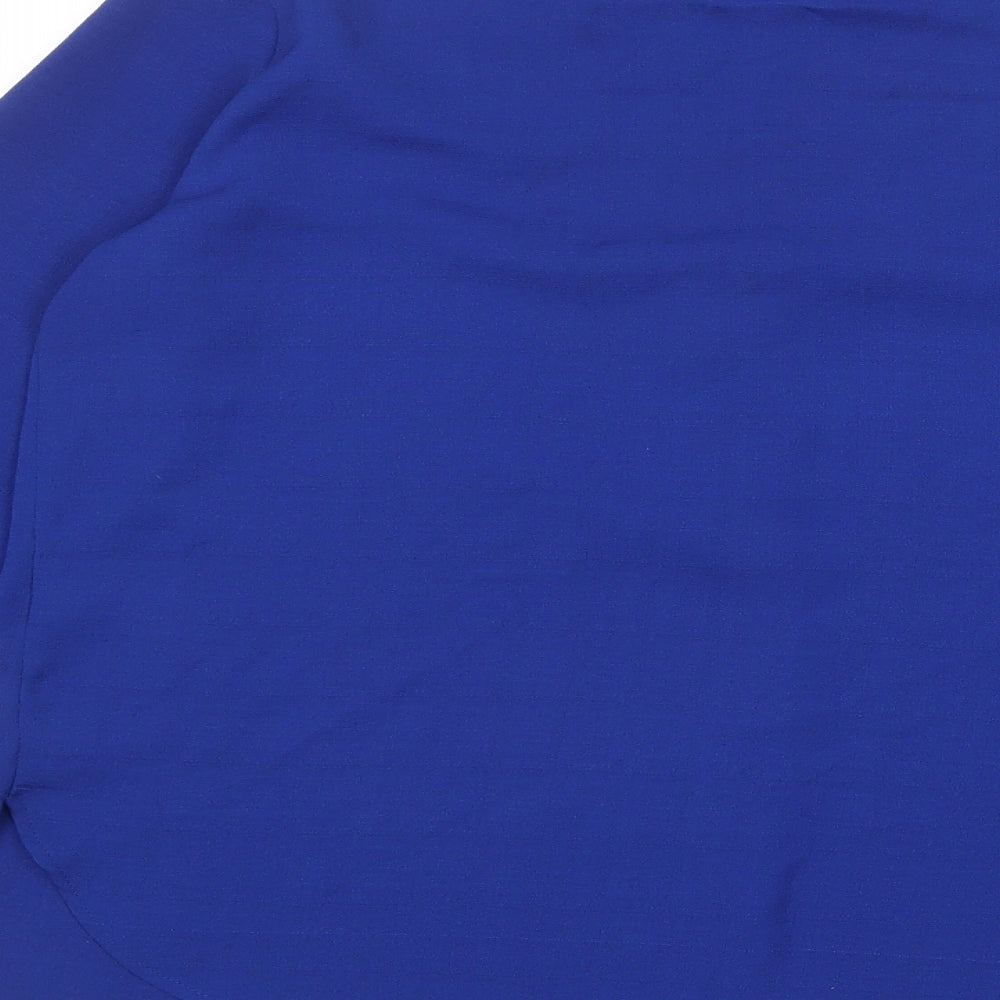 Womens Blue Polyester Basic Blouse Size 12 V-Neck