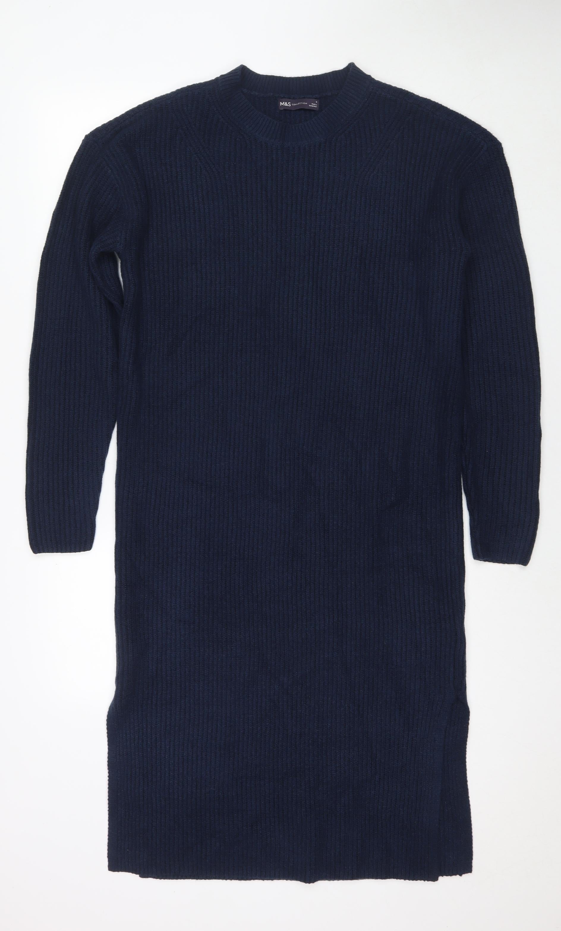 Womens Blue Polyester Jumper Dress Size M Round Neck Pullover