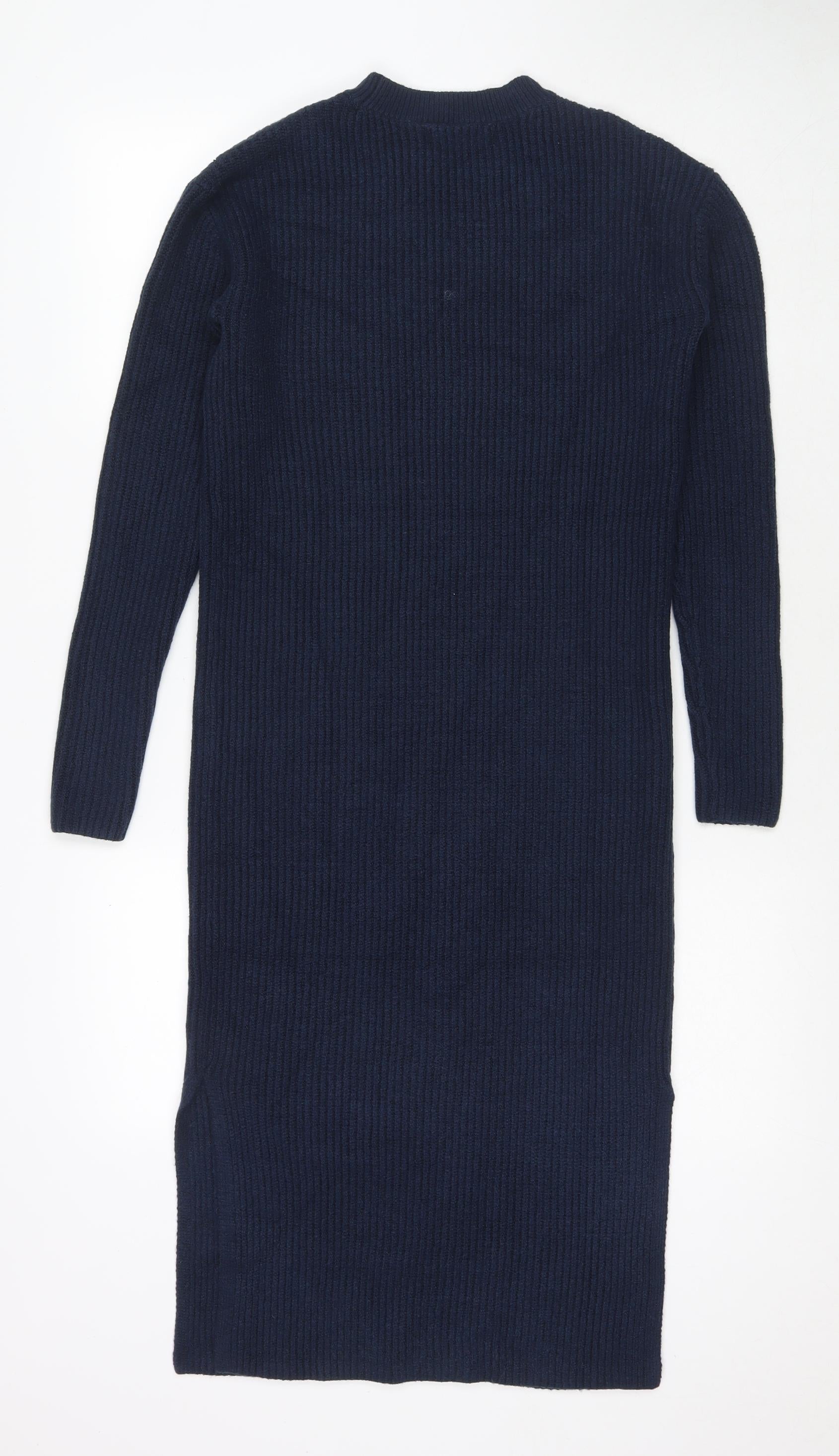Womens Blue Polyester Jumper Dress Size XS Round Neck Pullover