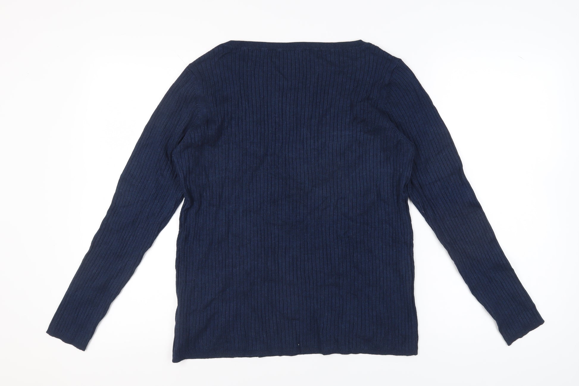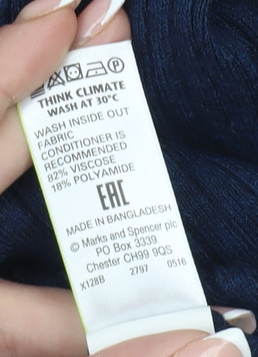 Embrace timeless elegance and comfort with this Marks and Spencer women's pullover jumper, crafted from a luxurious blend of 82% viscose and 18% polyamide. Designed in a rich blue hue, this tight-knit jumper is tailored to provide exceptional warmth and softness, making it an ideal choice for the colder autumn and winter months. The regular fit and long sleeve design ensure a flattering silhouette, suitable for an array of body types. Featuring a classic round neck, this jumper strikes a perfect balance between contemporary style and traditional elegance. The lightweight fabric adds to its versatility, allowing you to layer effortlessly with other wardrobe essentials. Ideal for casual occasions, this piece pairs beautifully with your favourite jeans or trousers for a chic, laid-back look. Despite its excellent used condition, there are no visible defects, ensuring it delivers both style and function for years to come. Machine washable for easy care, this jumper is a staple addition to any wardrobe, offering endless styling possibilities with its timeless and understated design. Don't miss out on this opportunity to own a piece of Marks and Spencer's impeccable craftsmanship. Add this must-have jumper to your collection today!
