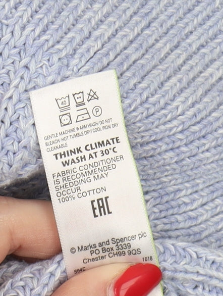 Elevate your casual wardrobe with this stylish Marks and Spencer Women's Jumper. Crafted from 100% cotton, this knitted pullover offers supreme comfort with its soft, breathable material. The beautiful blue shade adds a touch of elegance, making it suitable for various casual occasions. With a classic crew neck and regular long sleeves, it provides a timeless look that you'll want to reach for time and again. Versatile and functional for all seasons, this piece is both machine washable and easy-care, ensuring it's as practical as it is fashionable. Despite slight signs of previous wear, this jumper maintains a vibrant appearance, ready to become a staple in your wardrobe. Embrace the effortless style and quality craftsmanship that comes with the renowned Marks and Spencer brand.