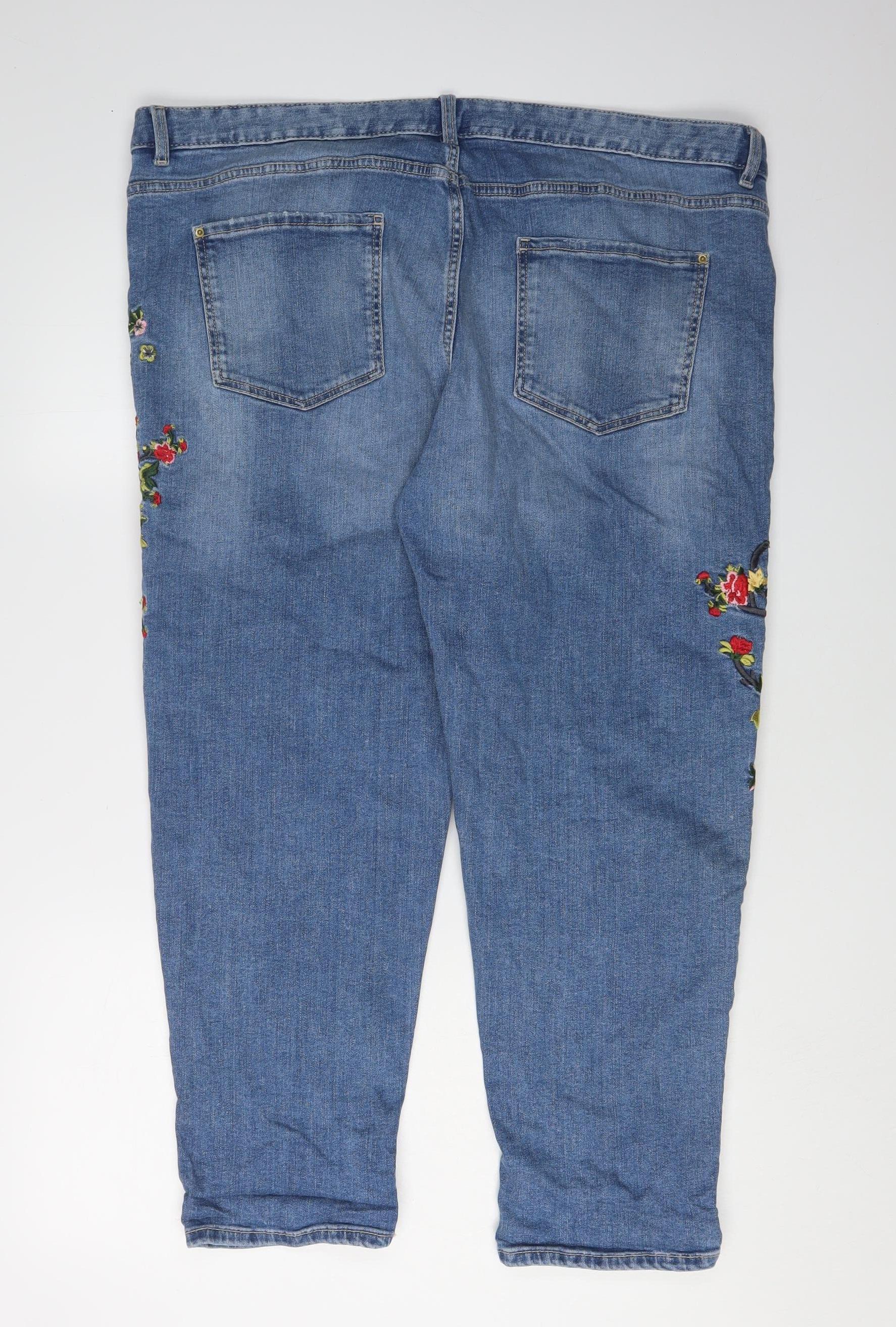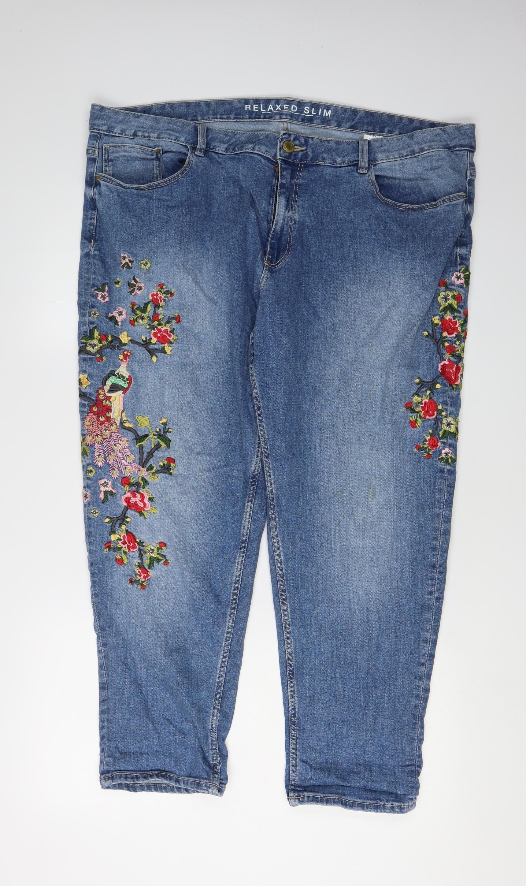 These stylish Marks and Spencer women's jeans are perfect for enhancing your casual wardrobe. Designed in a relaxed fit with a slim profile, they're made from soft, durable denim for comfort and longevity. The blue colour provides a versatile base that pairs well with tops of any hue. Featuring beautiful embroidered floral patterns, these jeans add a touch of elegance and sophistication. The five-pocket design offers practical convenience, while the button and zip closure ensures easy wear. Crafted from 99% cotton with a hint of elastane for a comfortable stretch, they are machine washable for easy care. Ideal for spring and autumn wear, these jeans cater to the needs of both fashion and function. Discover the perfect balance of style and comfort with these exquisite jeans.