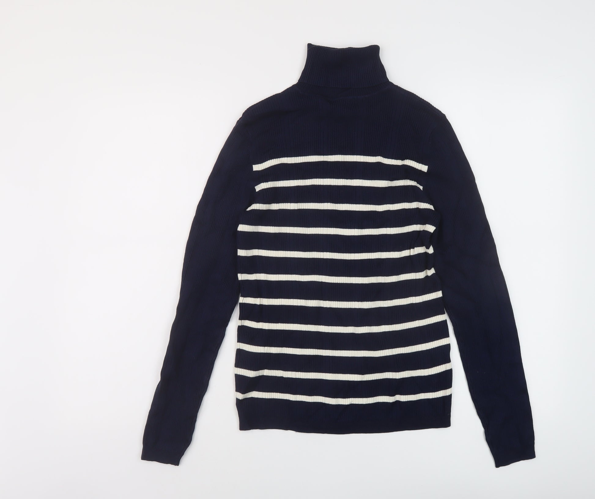 Womens Blue Roll Neck Striped Viscose Pullover Jumper Size 10