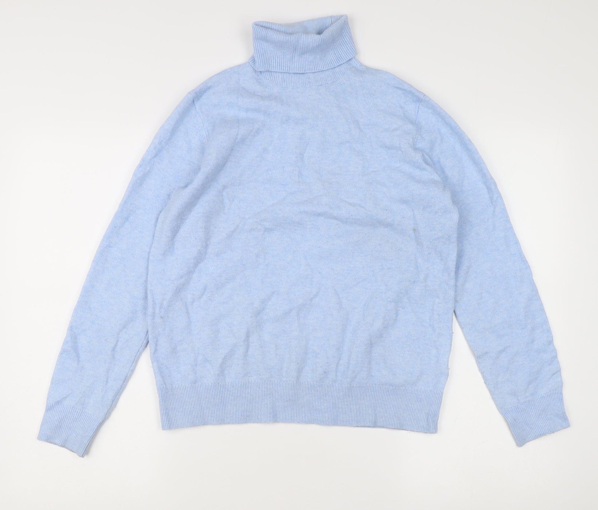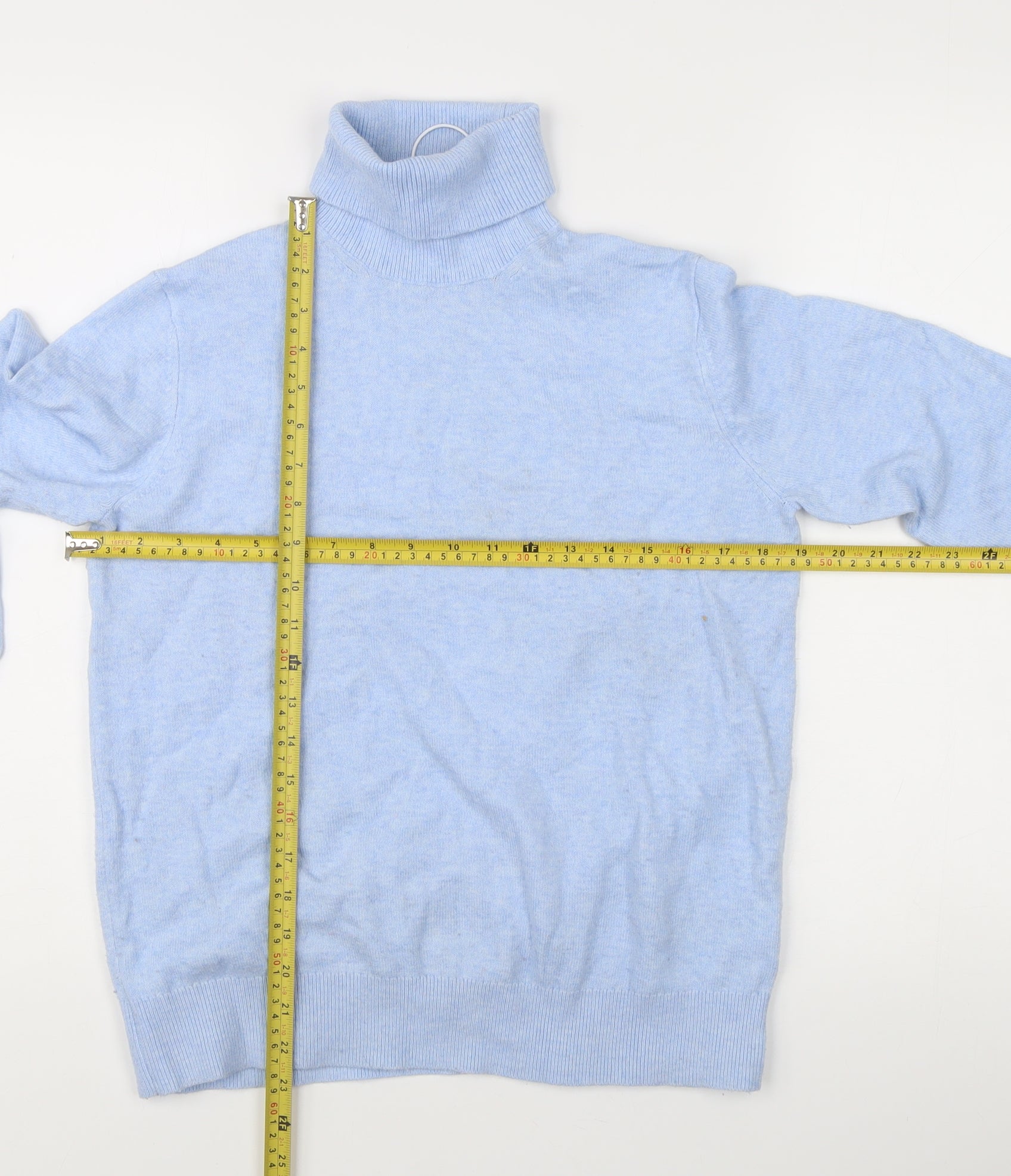 This Marks and Spencer women's roll neck jumper is an elegant addition to any wardrobe. Crafted in a timeless sky blue shade, this piece offers both style and warmth, making it perfect for the cooler months of autumn and winter. Designed in a classic pullover style with a roll neck, it delivers a chic yet cosy look, ideal for layering under coats or wearing on its own for a more relaxed outfit. Made from a high-quality blend of wool and polyamide, the jumper combines the luxurious softness and warmth of wool with the durability and flexibility of synthetic fibres, ensuring lasting comfort and wearability. The long sleeves and tight-knit fabric enhance insulation while maintaining a lightweight feel, so you can enjoy maximum cosiness without feeling bulky. The regular fit flatters a range of body shapes, and the minimalist design with no pattern provides easy versatility to pair with jeans, skirts, or tailored trousers for different occasions. As part of the Marks and Spencer Collection, this roll neck jumper represents dependable quality and timeless style. Whether you're heading to the office, enjoying a casual weekend, or meeting friends for a coffee, it transitions effortlessly to suit the moment. In excellent pre-owned condition with only light bobbling and a faint mark that is barely noticeable, it still has plenty of life and style left to give. This beautiful winter essential is also machine washable, making it practical and easy to care for. Treat yourself or someone special to this cosy, elegant piece that's perfect for keeping warm while looking effortlessly chic. With its classic design and premium materials, this jumper is one you'll reach for time and time again during the cooler seasons.