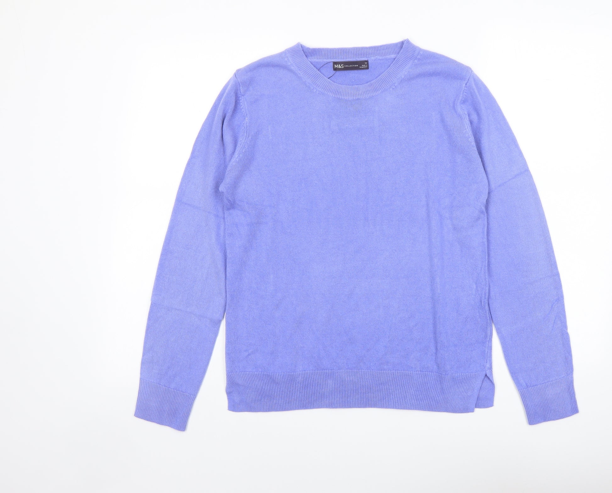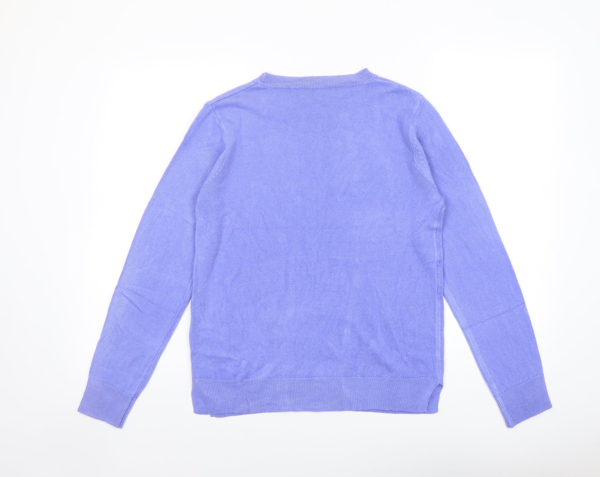 Womens Blue Round Neck Acrylic Pullover Jumper Size 12