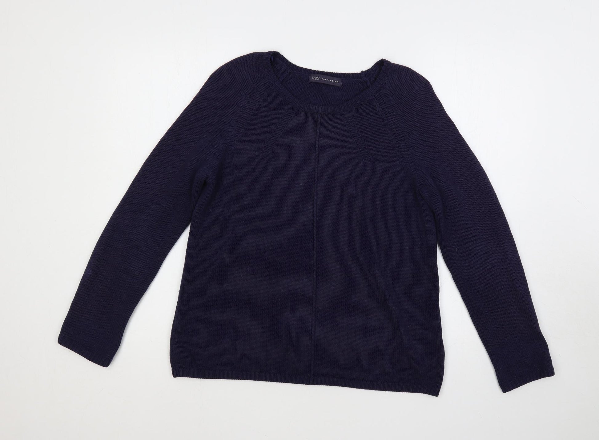 Womens Blue Round Neck Cotton Pullover Jumper Size 10