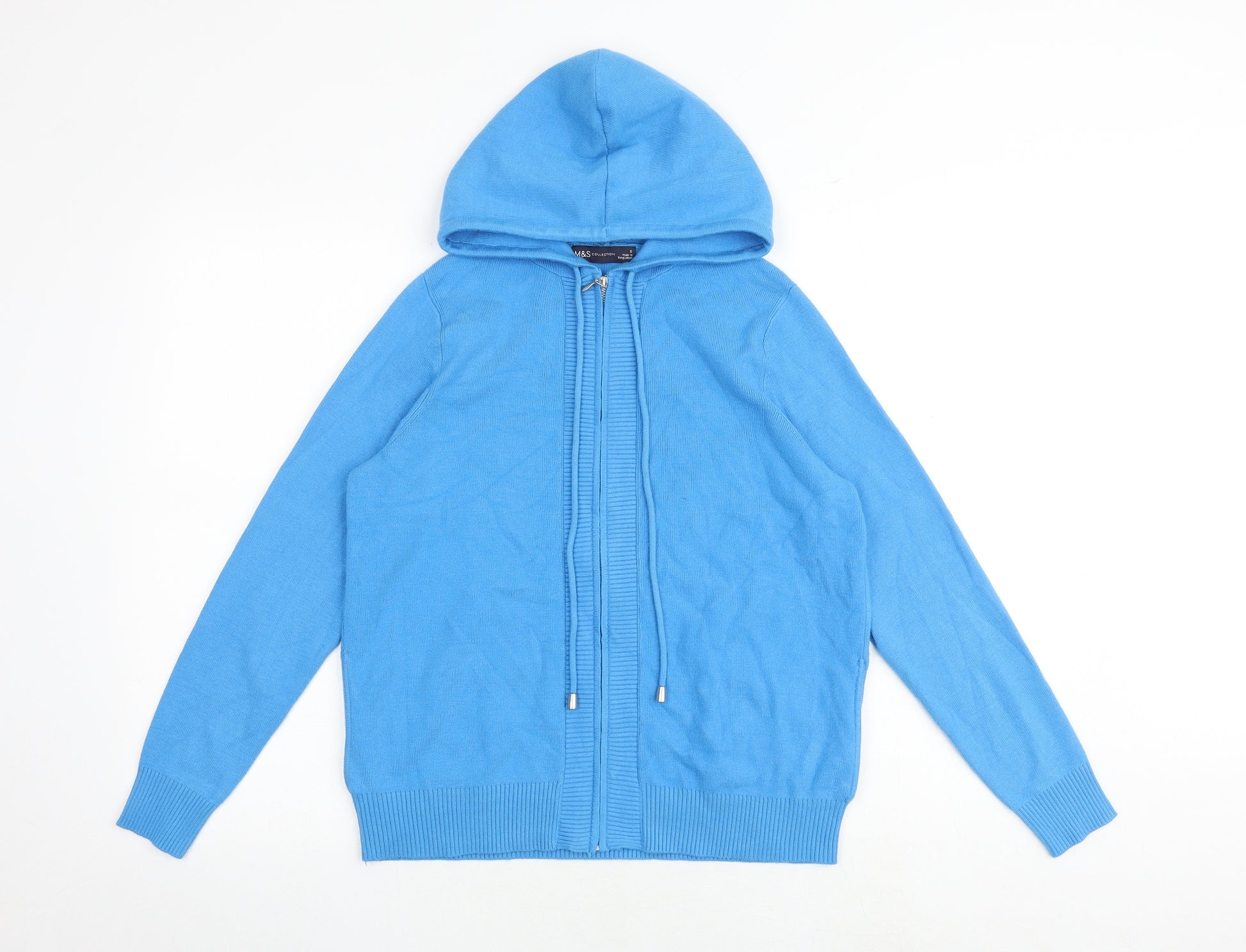 Womens Blue Round Neck Viscose Full Zip Jumper Size S